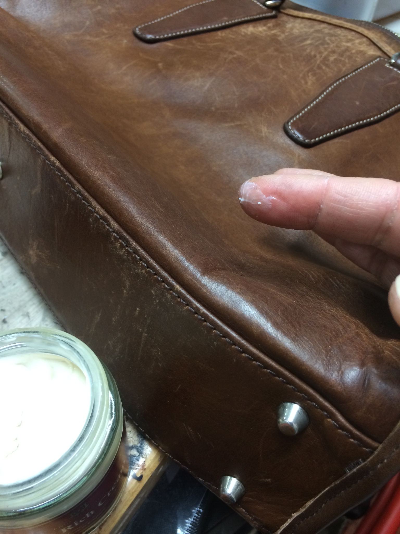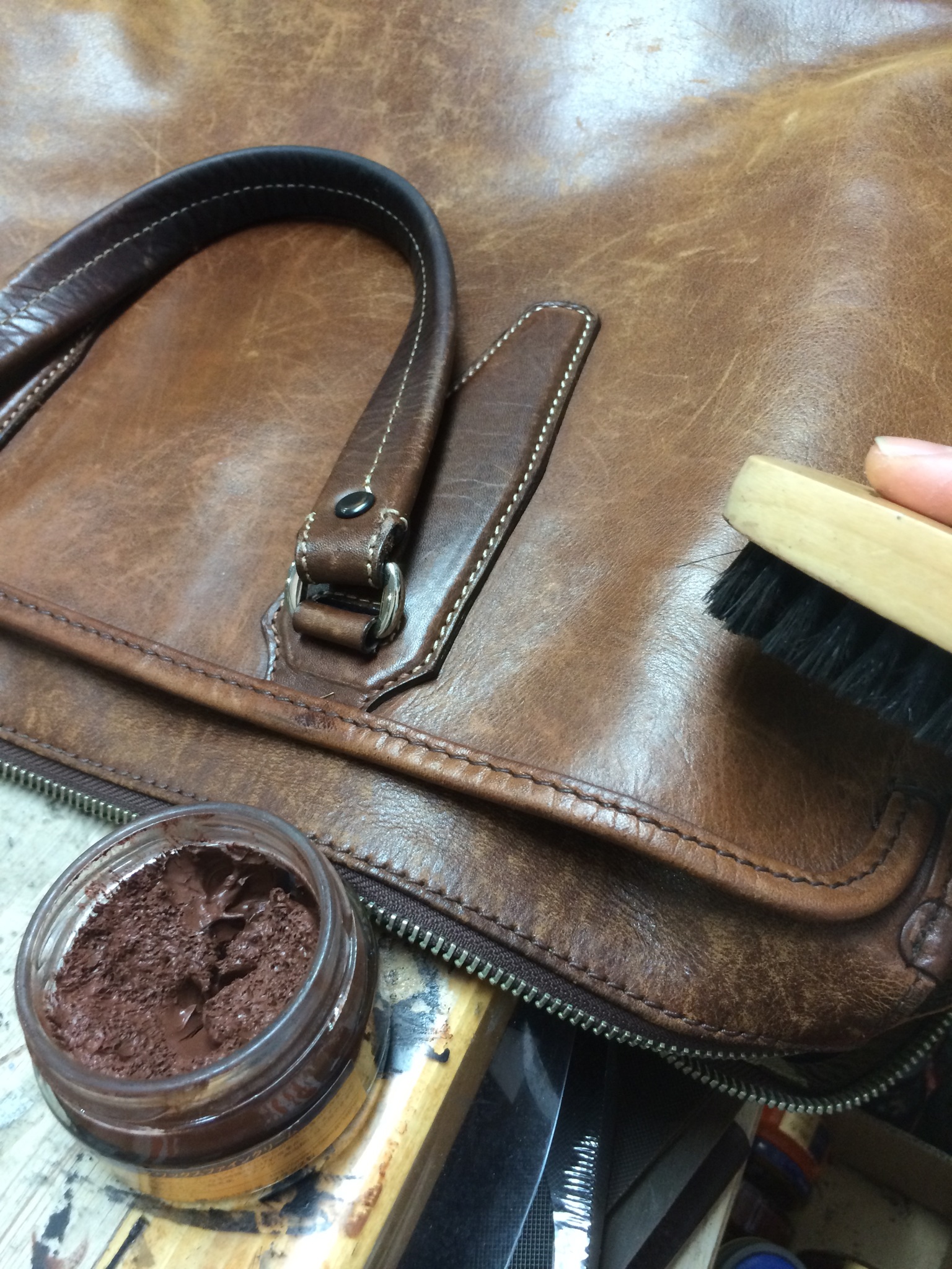 こういう革のバッグの色あせを戻すメンテナンスには最適です!