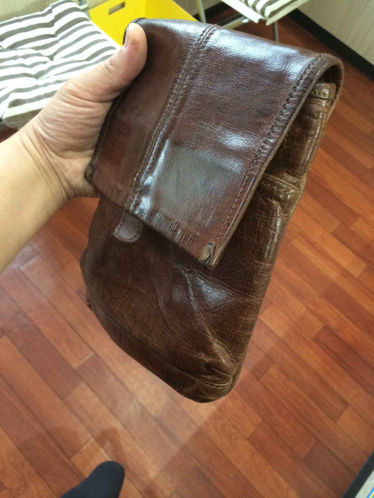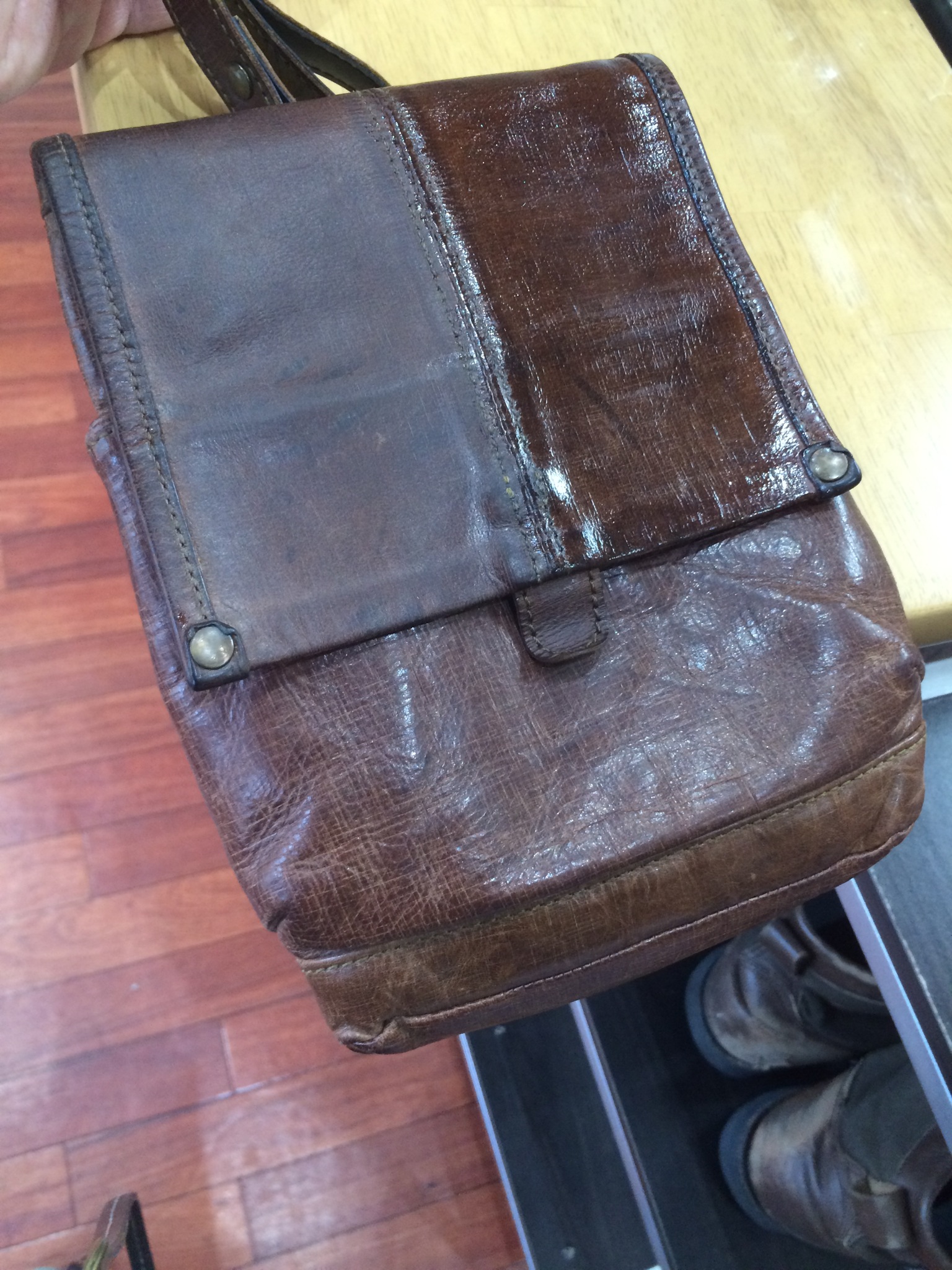 今回は革 カバン 色ツヤ復活コーティングです。
