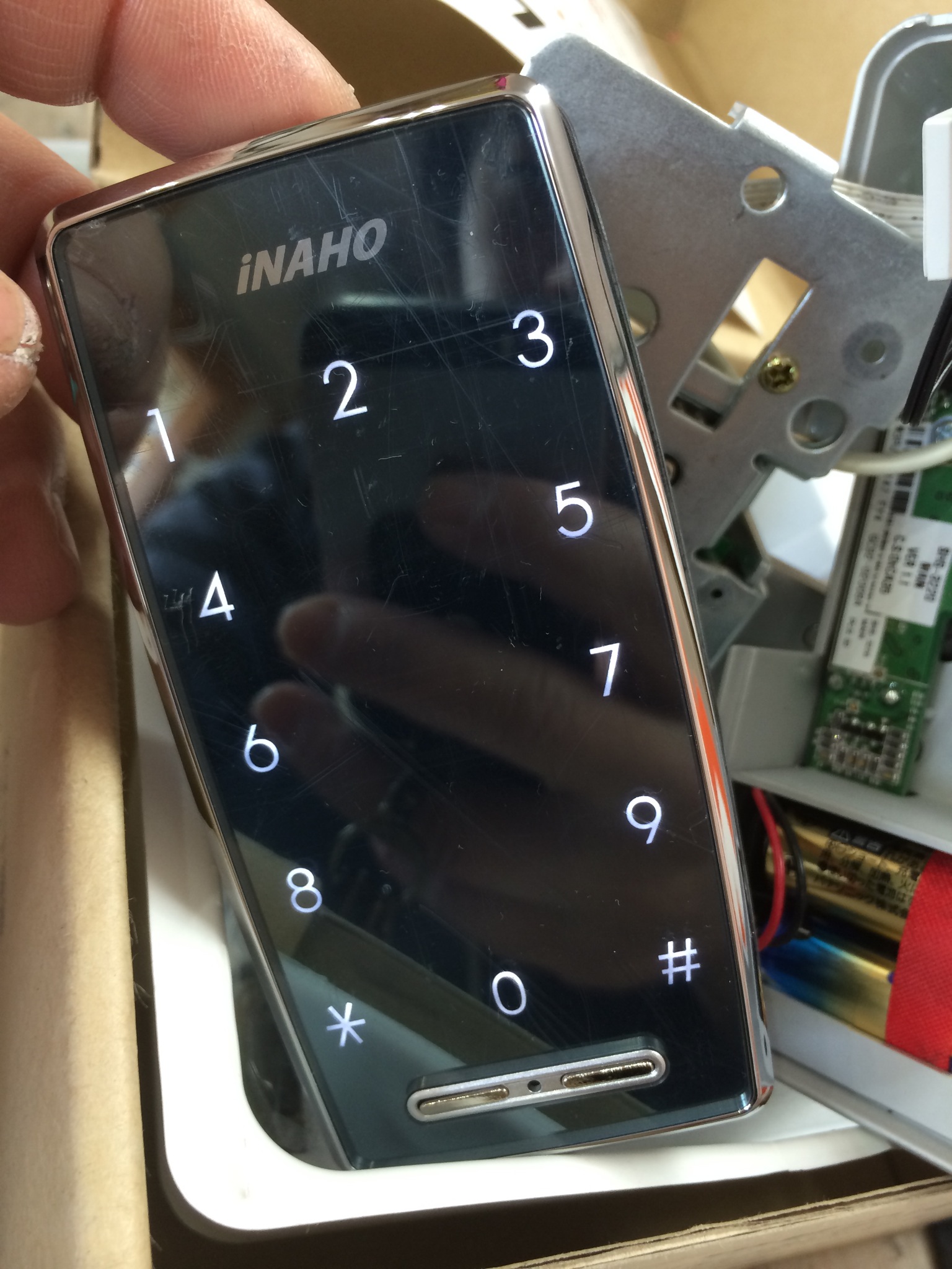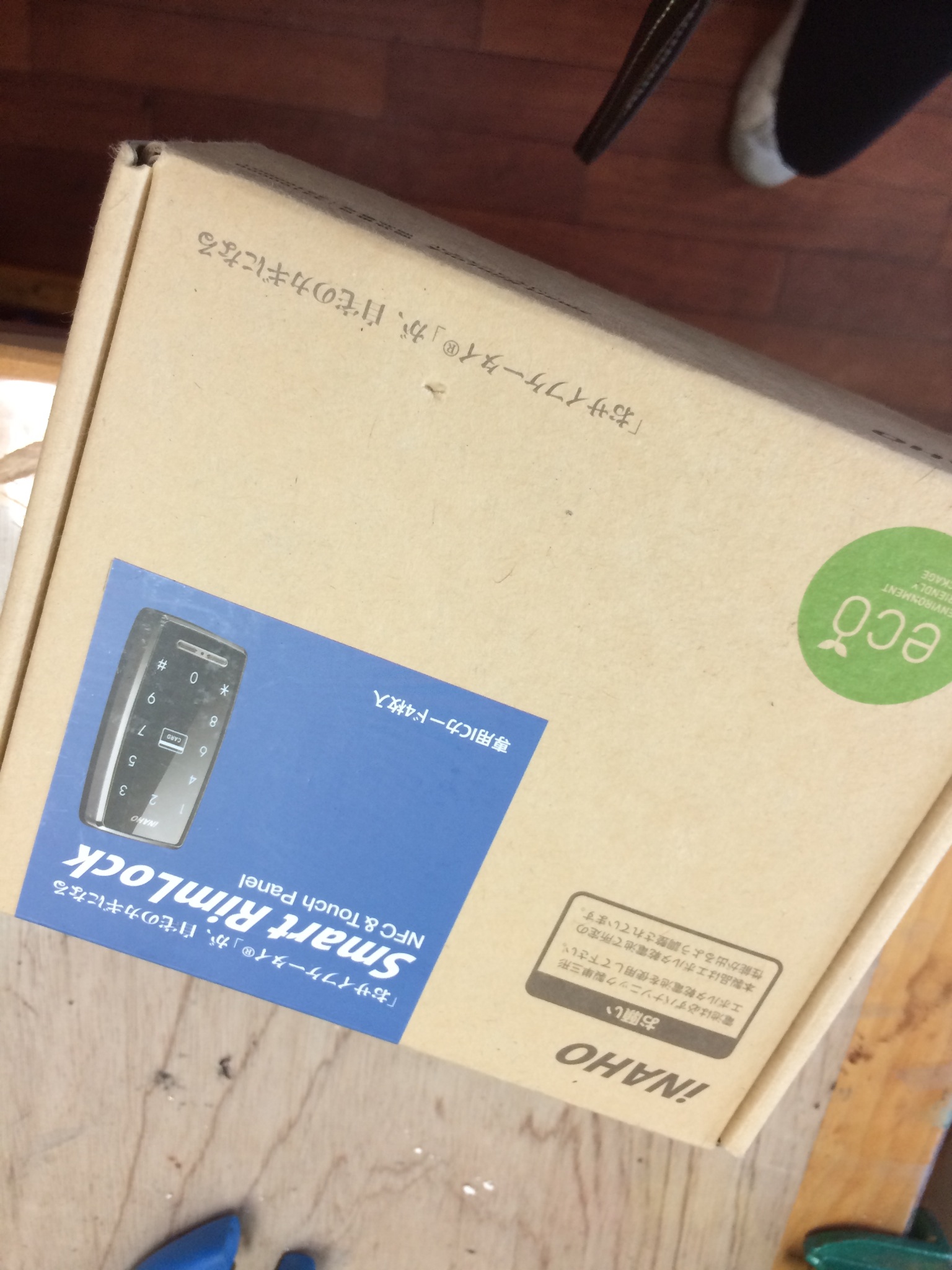 今回は電池式補助錠、当店一押しのスマートリムロック取付です。
