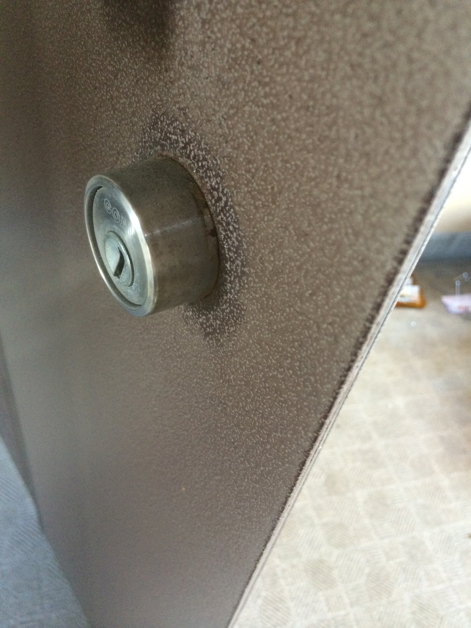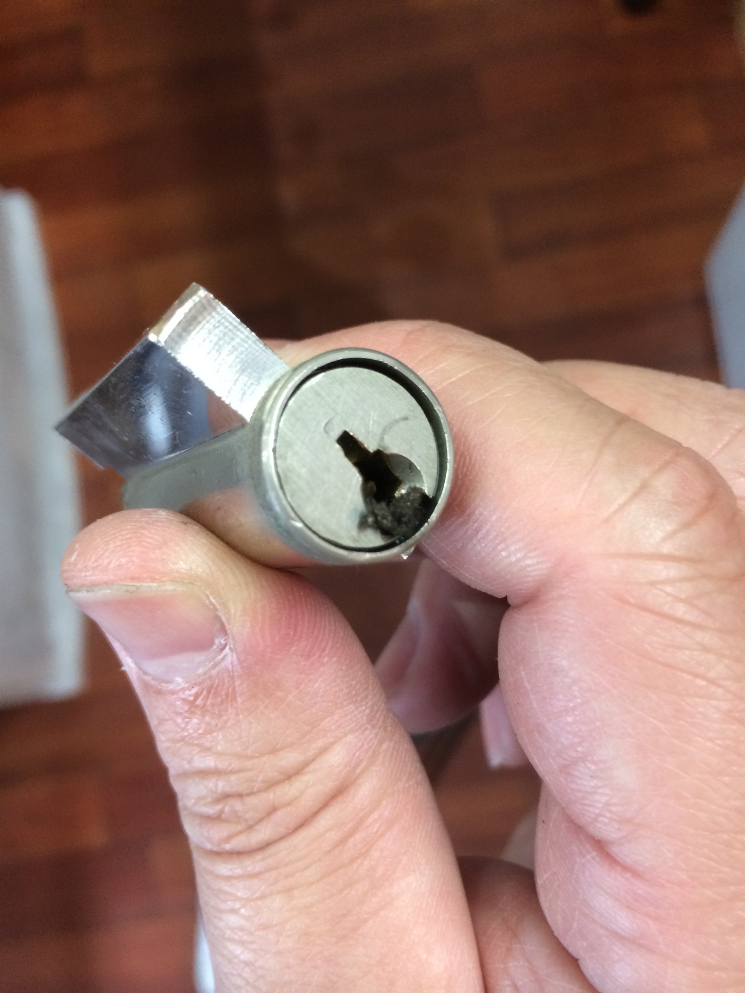 カギ穴の奥の部品がずれてしまって、カギが奥まで入らなくなってるのです。