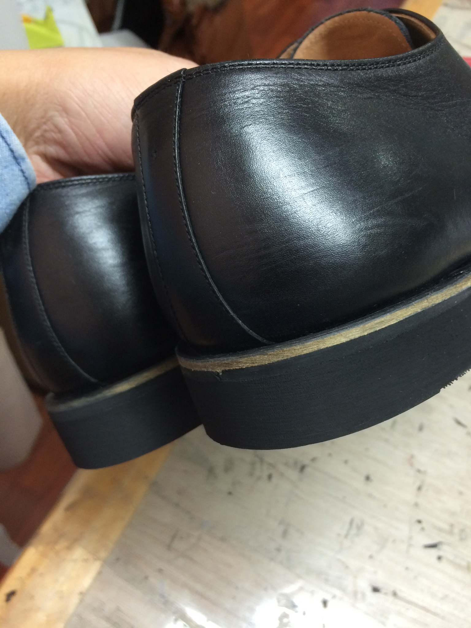 通常、靴のカカト修理等では最後に靴磨きしてきれいに仕上げるんですが