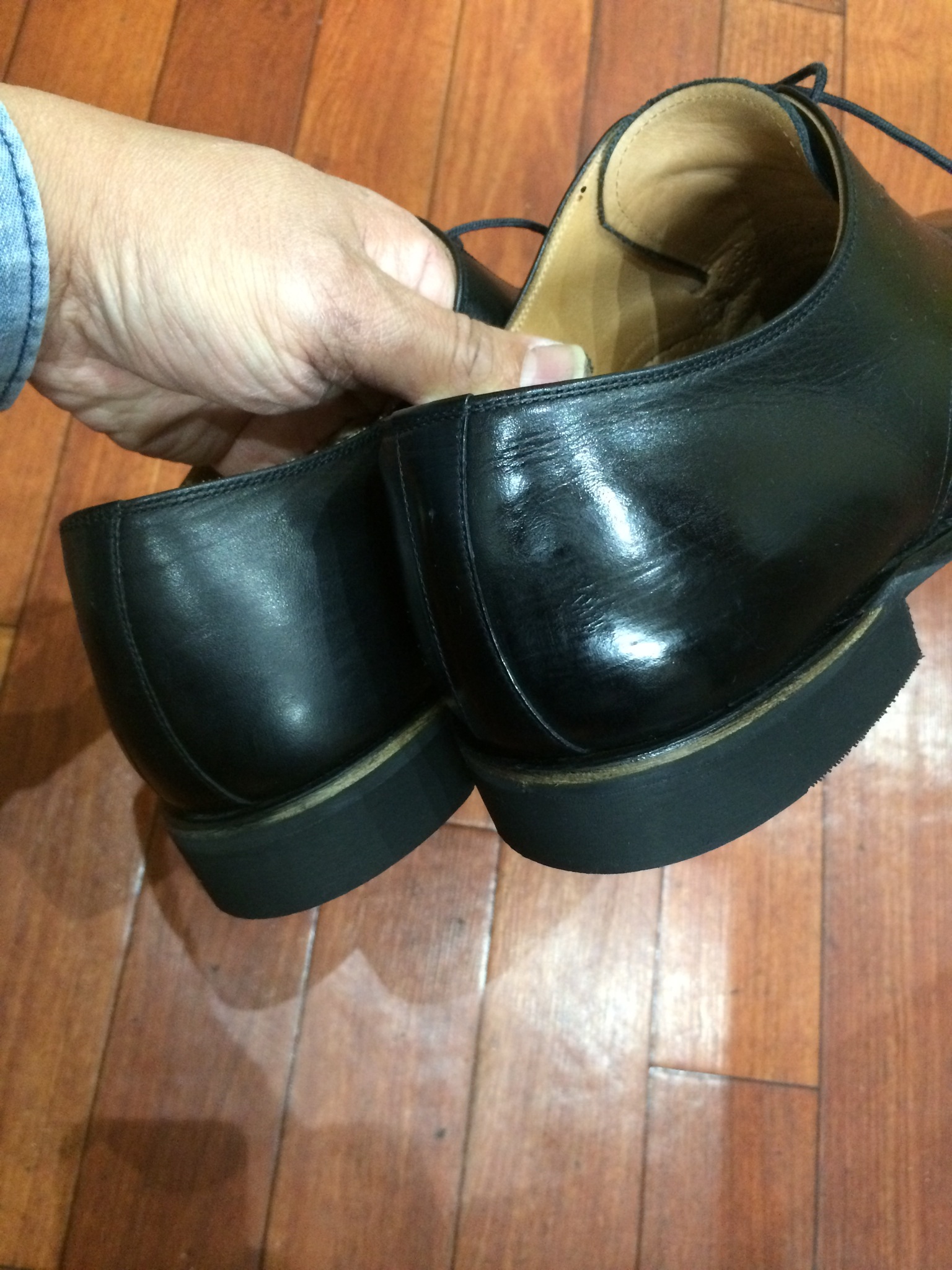 当店で鏡面仕上げの際はかかと部分もしています。