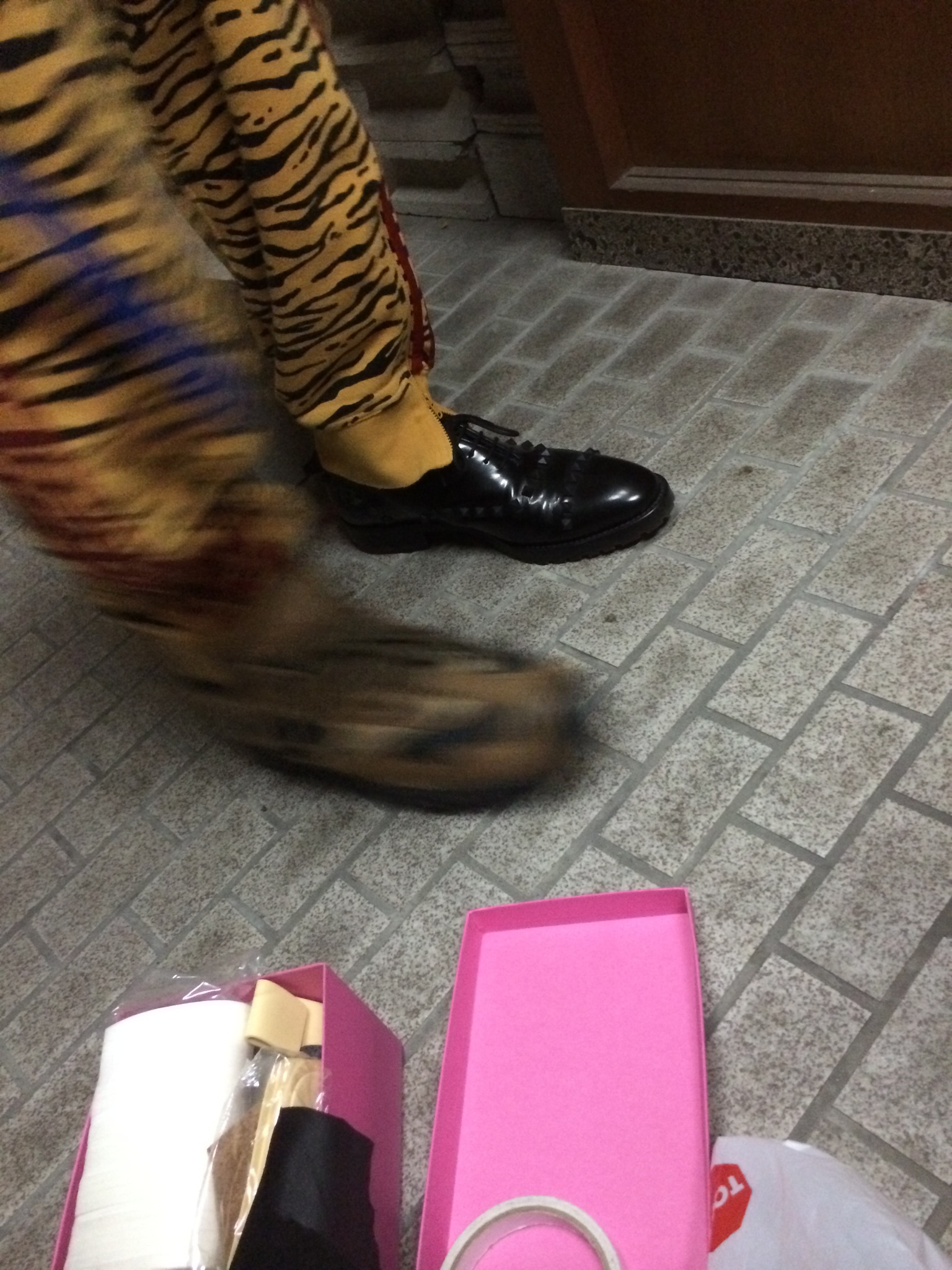 (靴を履いて往復中)