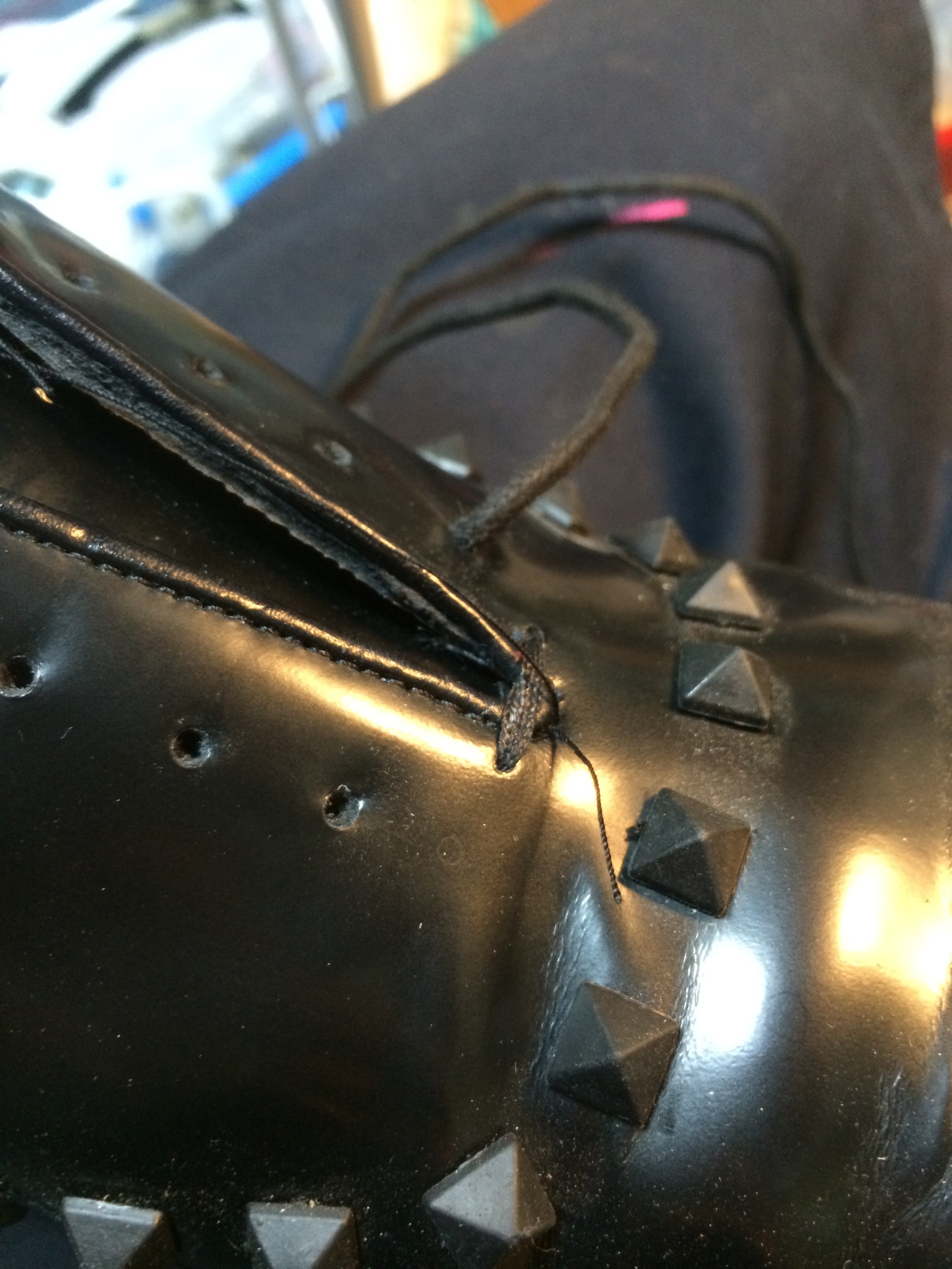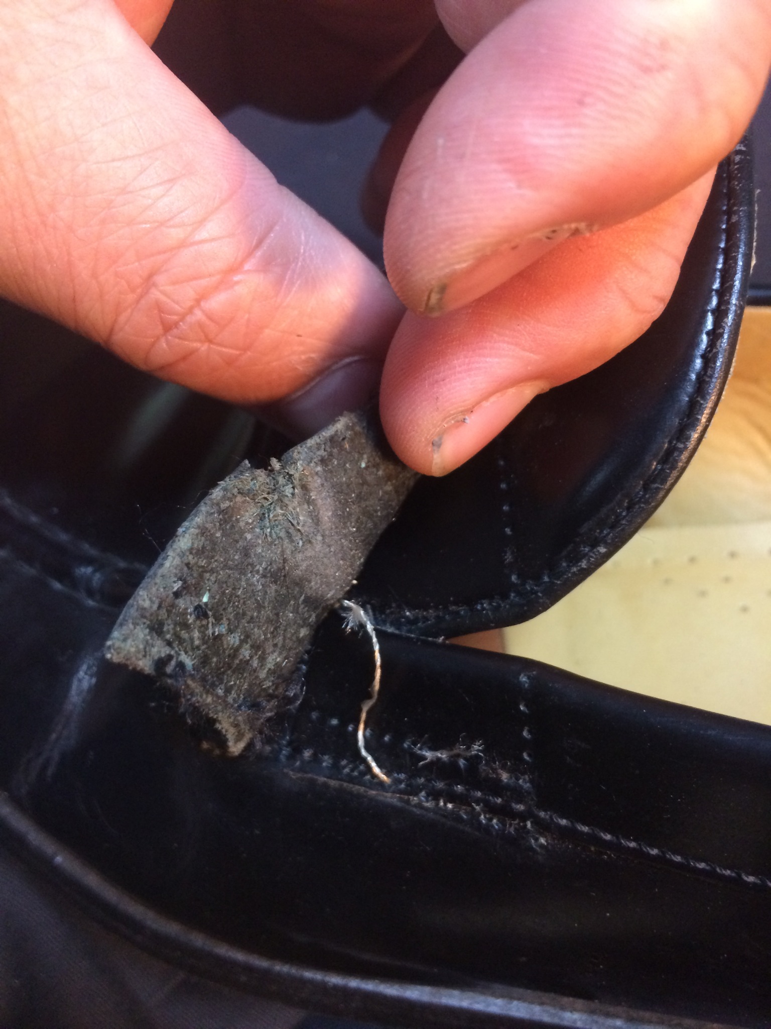 履き口まわりも合皮だったのですが、もうめくれる部分は全部めくれた状態でしたので