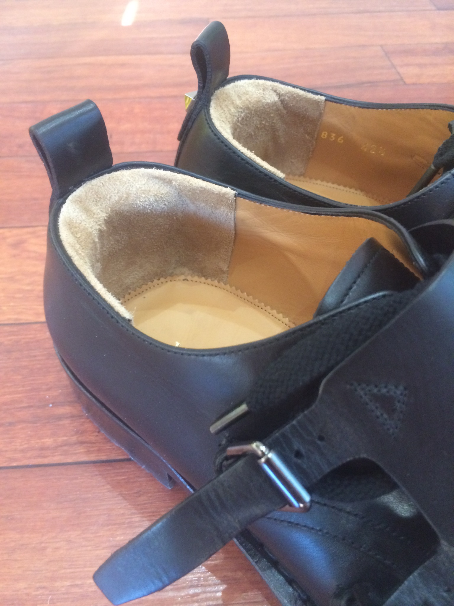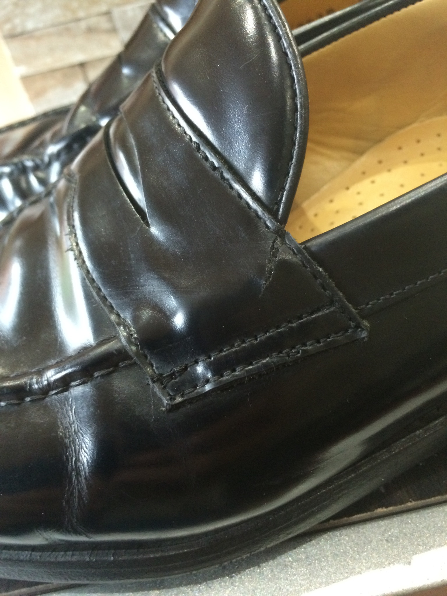 ↑原因はベロが前に前に ズレていくので折れ曲がった革が足の指を圧迫していると判断しました。