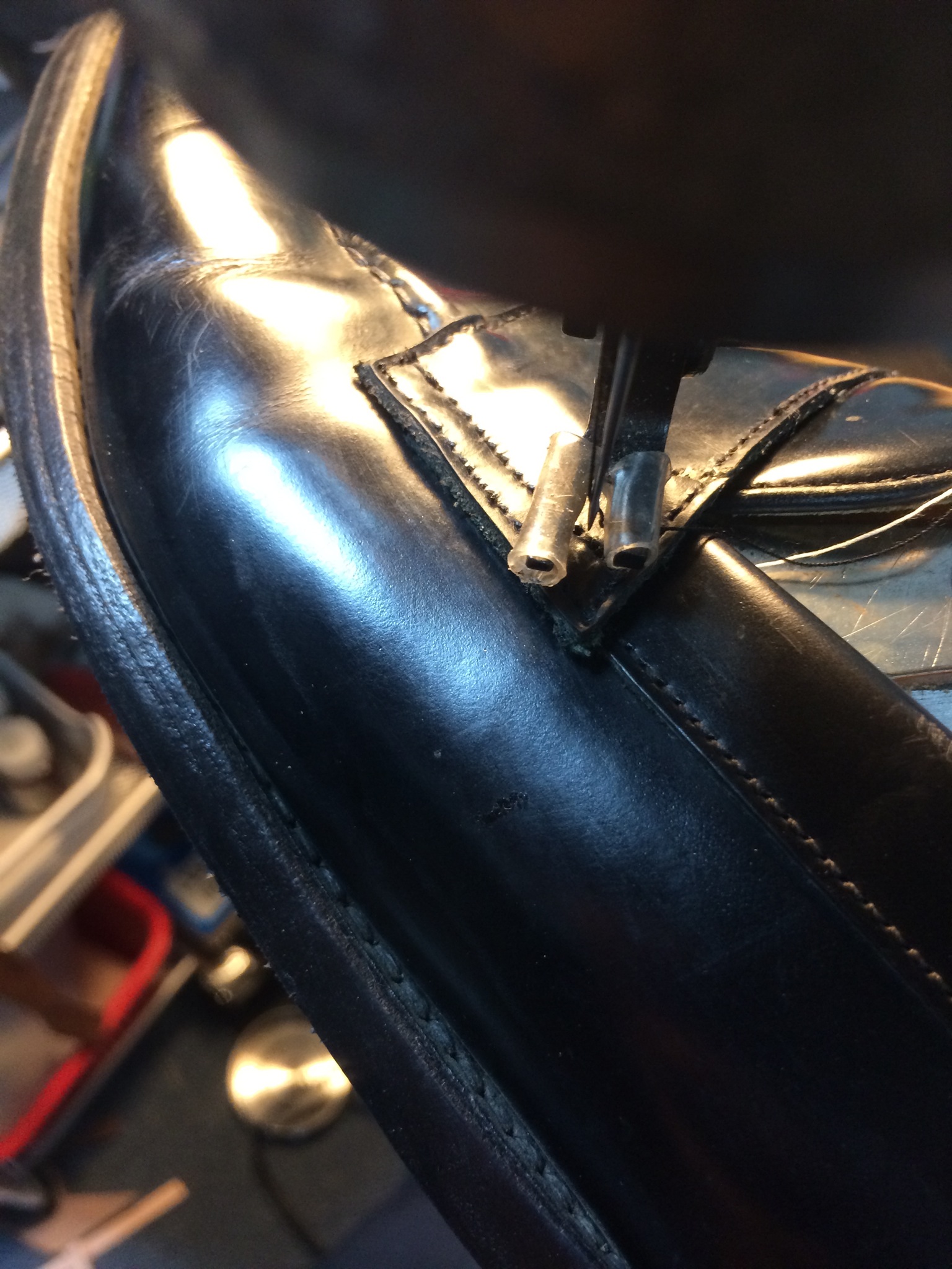 ↑つま先部分の革にその時の手術の跡があります。
