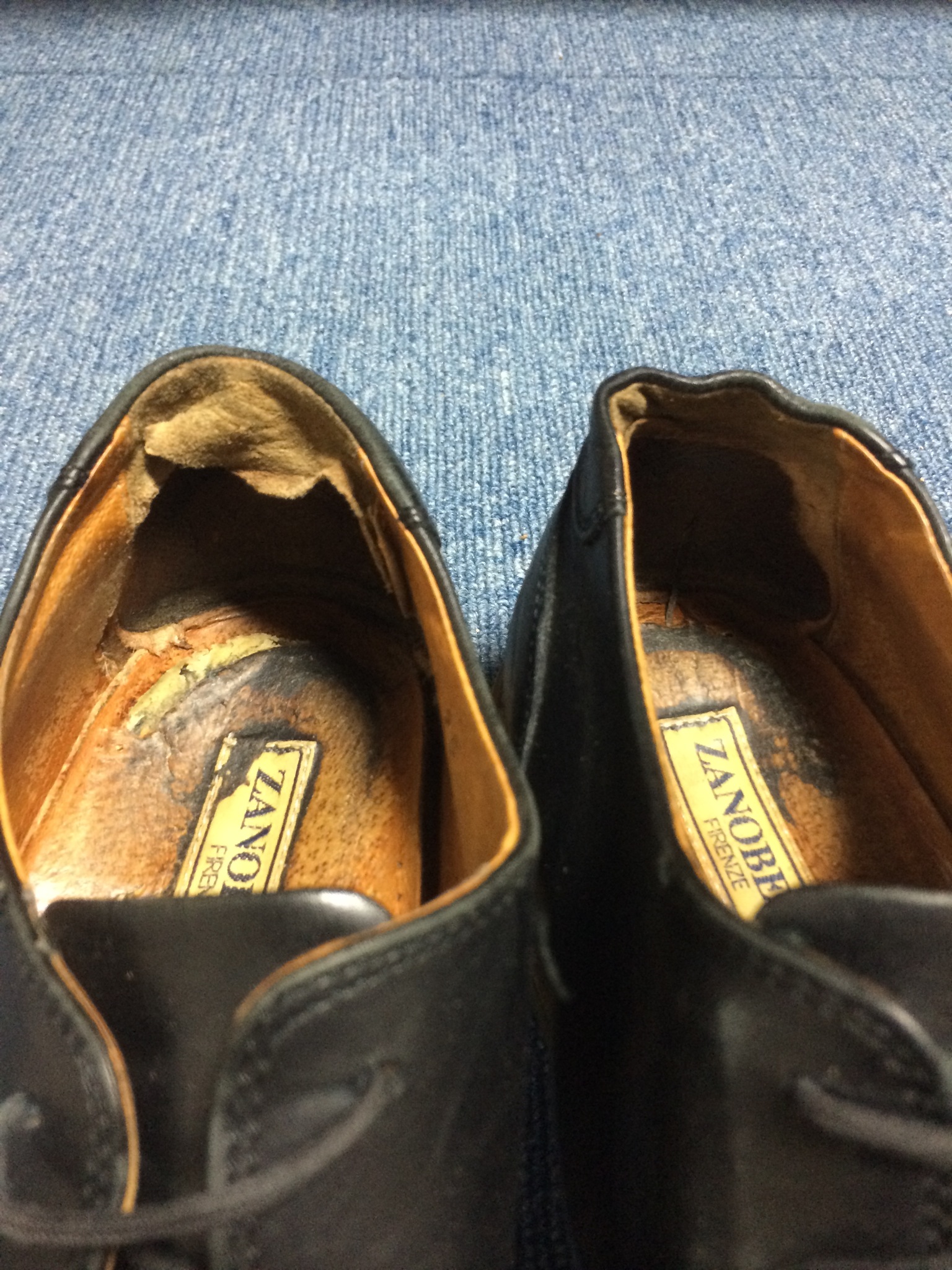 紳士靴 かかと内側修理 すべり革交換+クリーニング