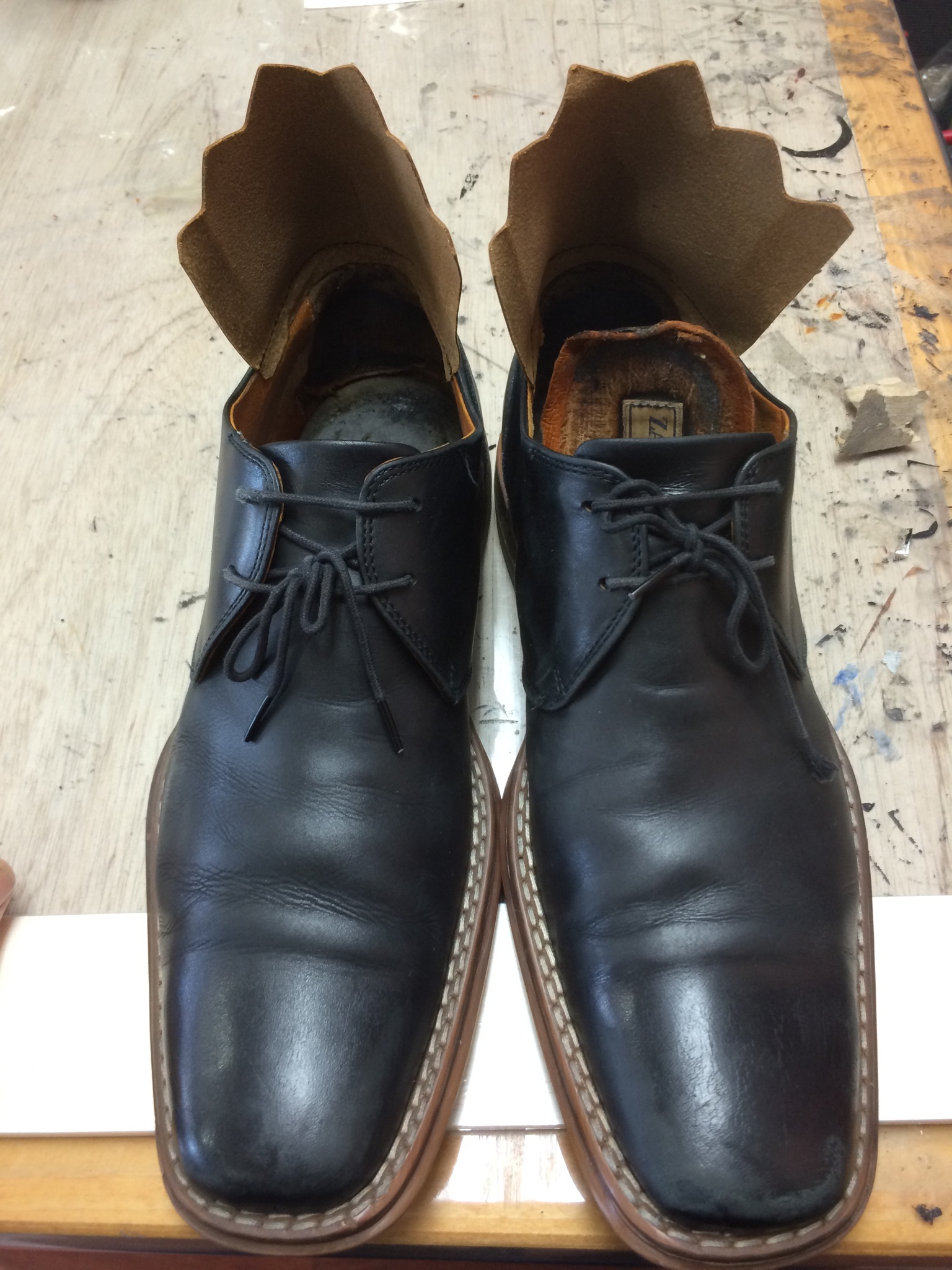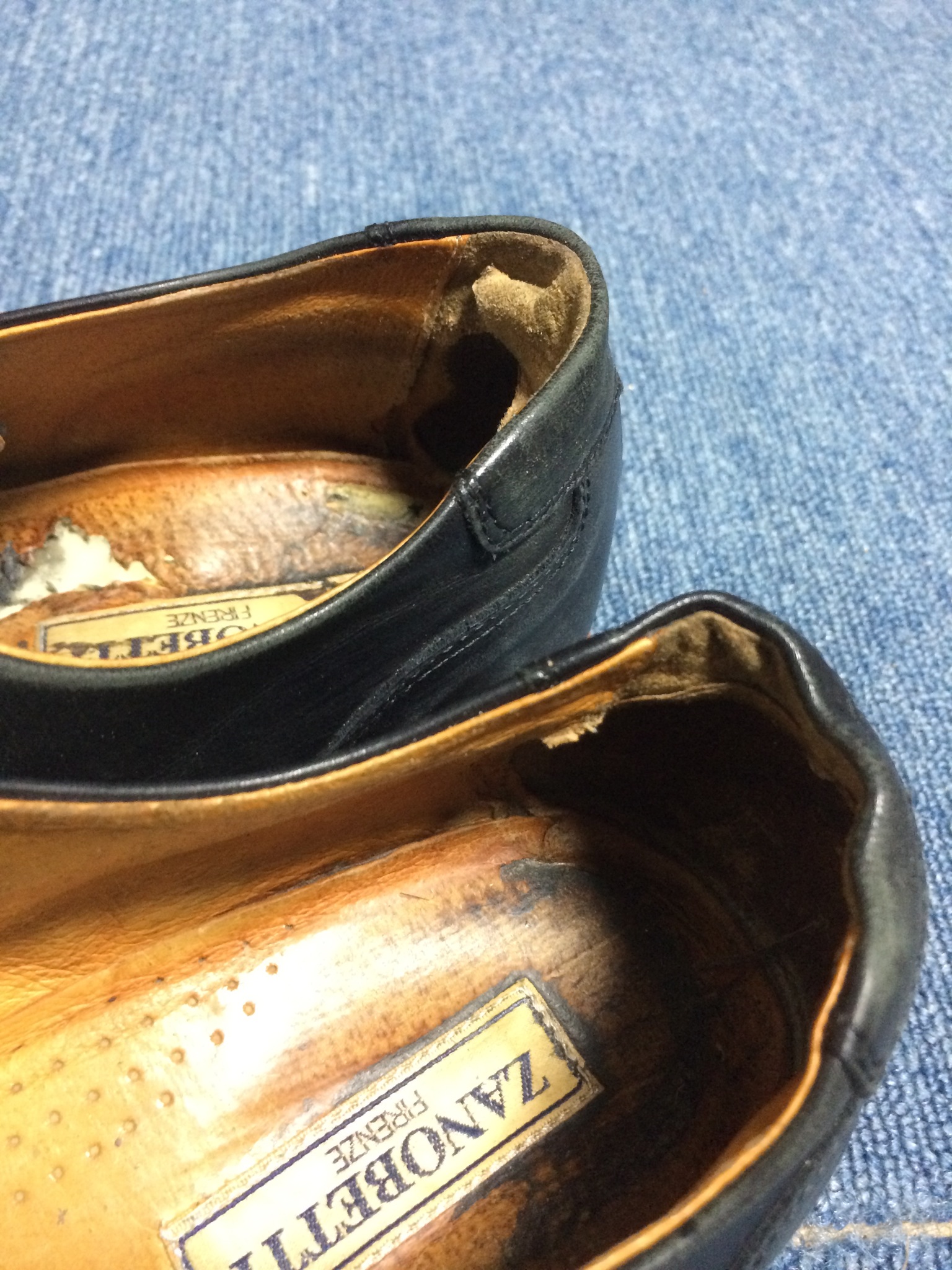 今回はメンズ 革靴の履き口全体の革巻き補修です。