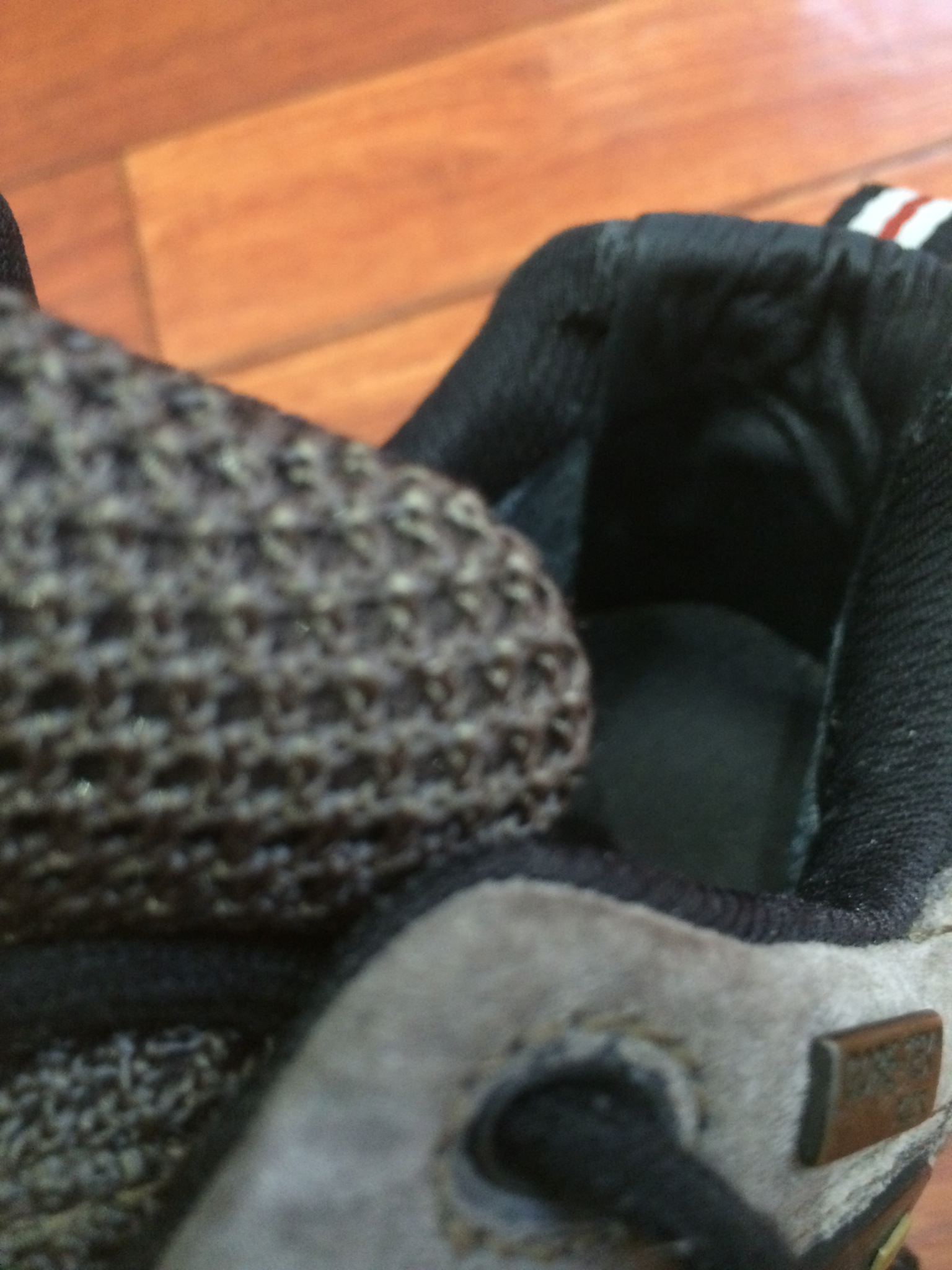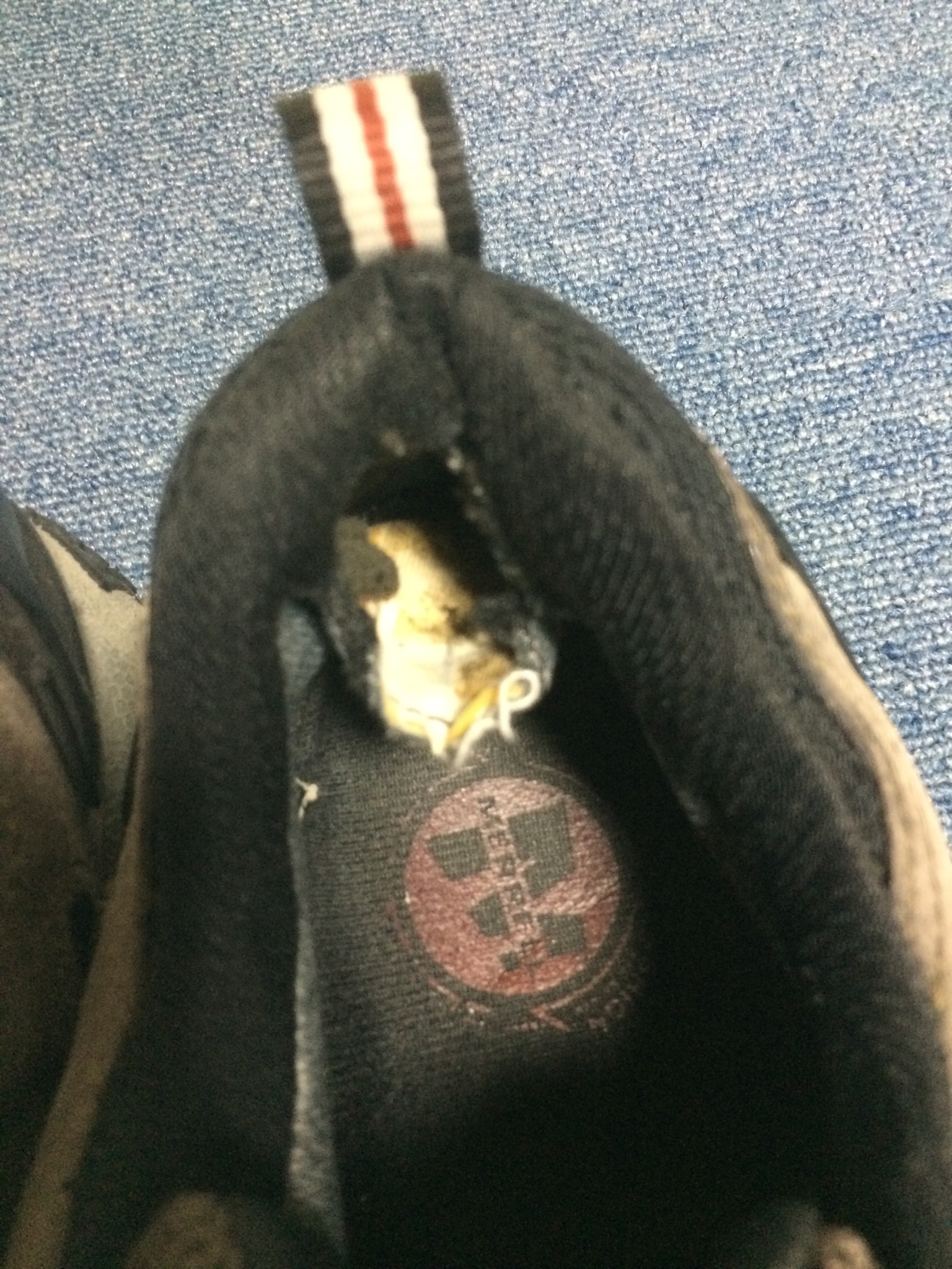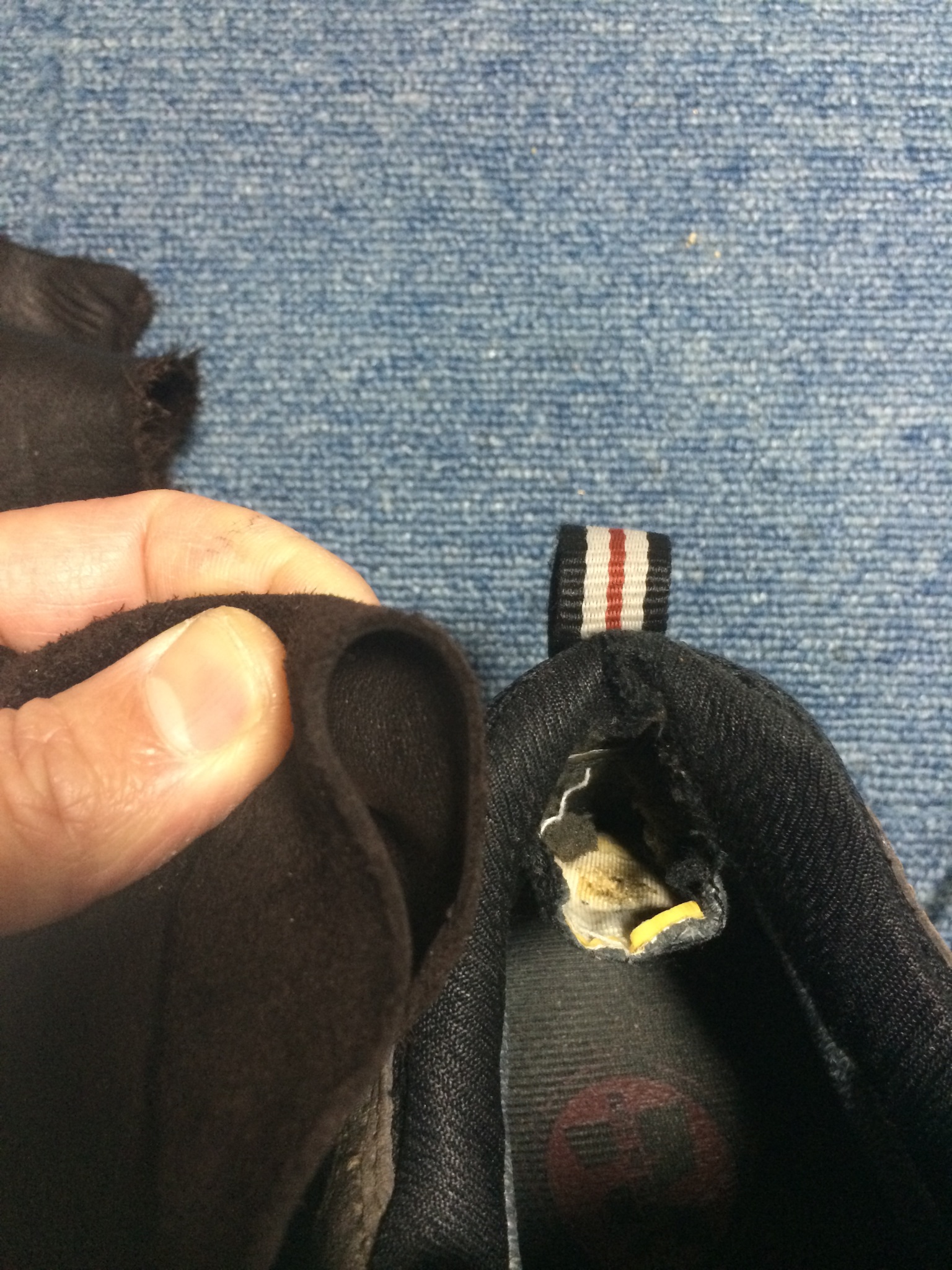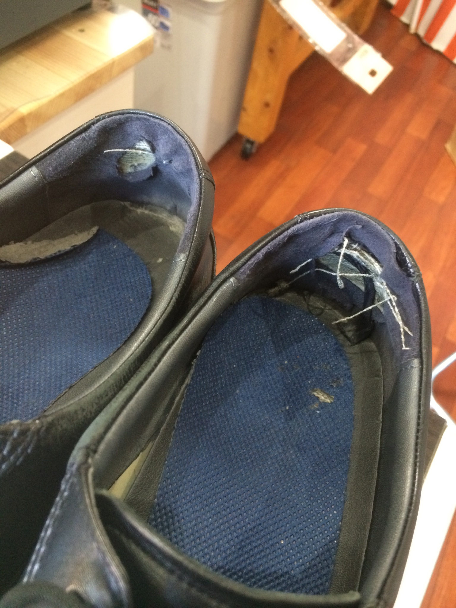 穴からカカトの芯が出てるので履く時に当たって痛いそうです。