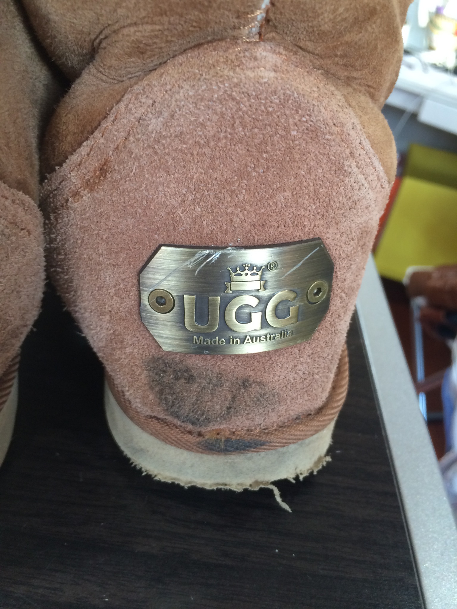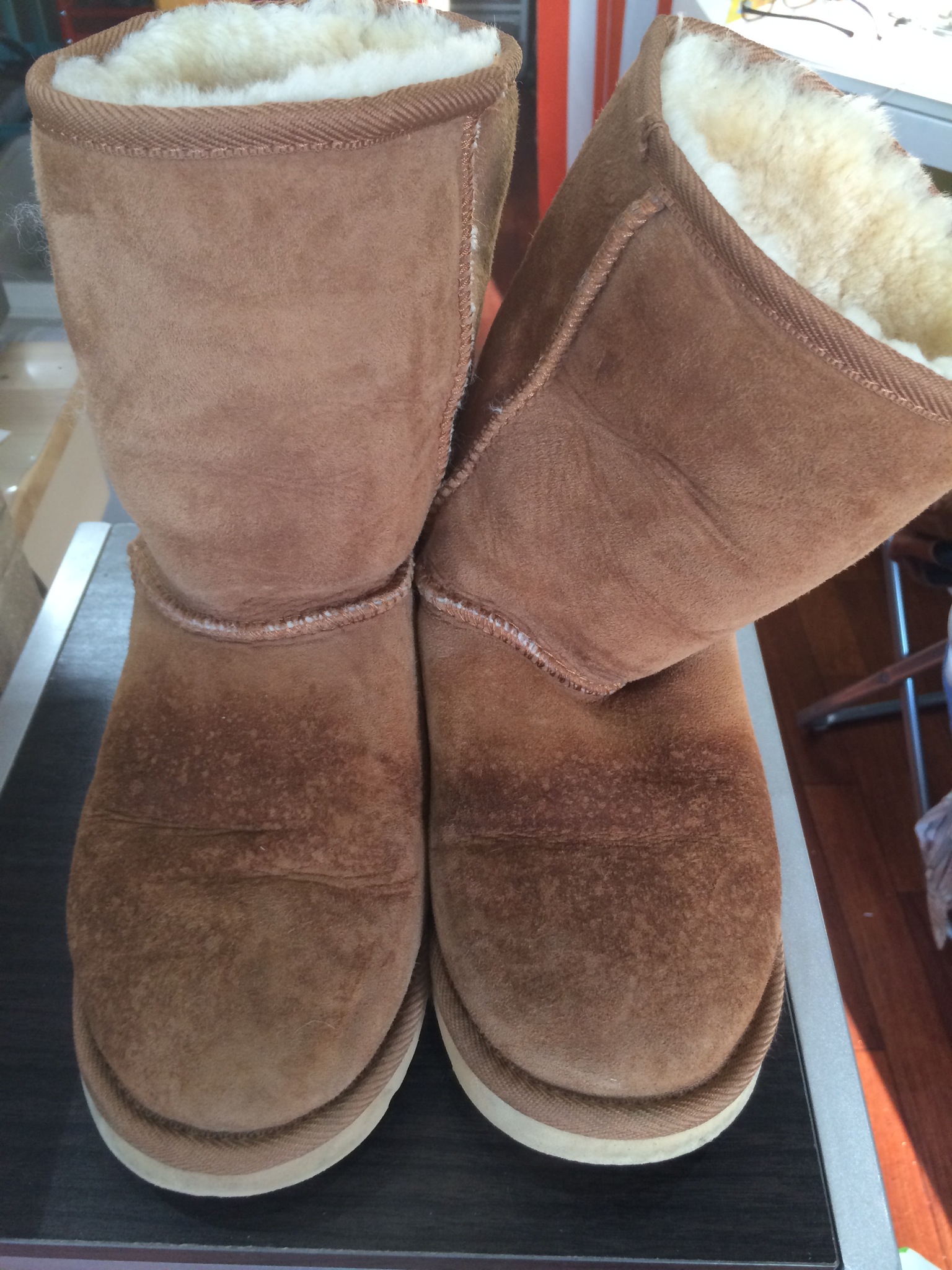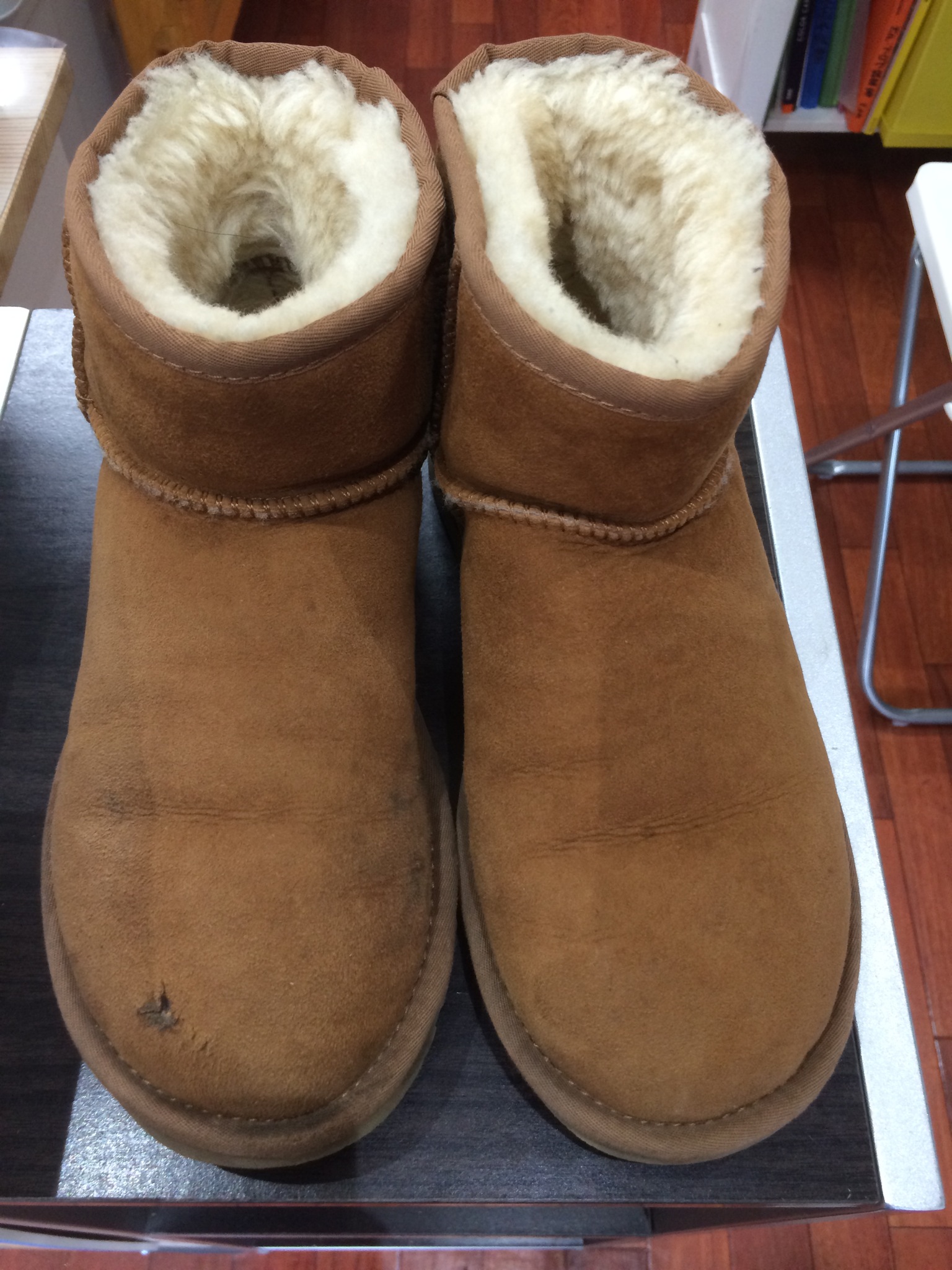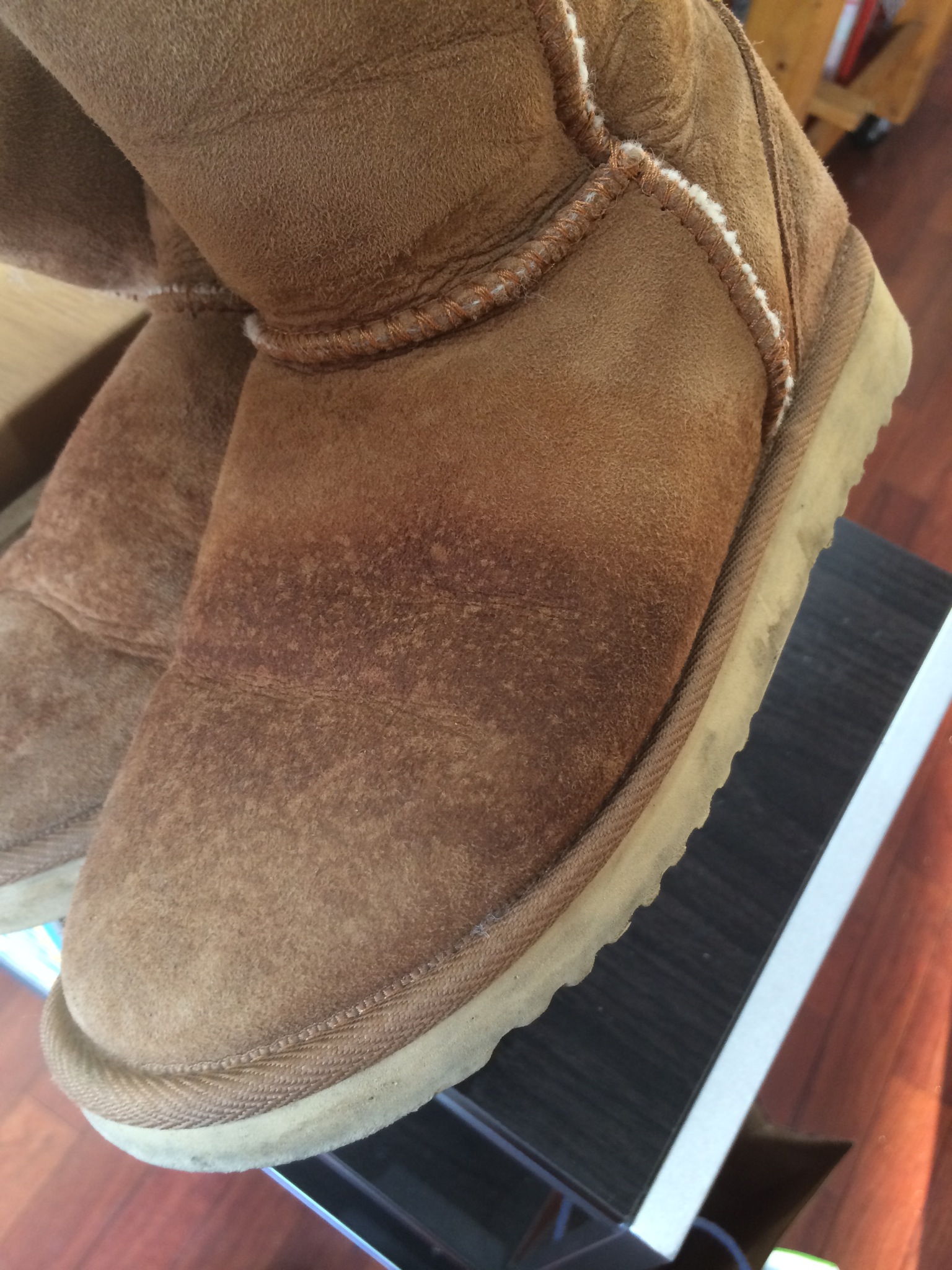 アグ(UGG) ブーツ シミ取りクリーニング+かかと修理