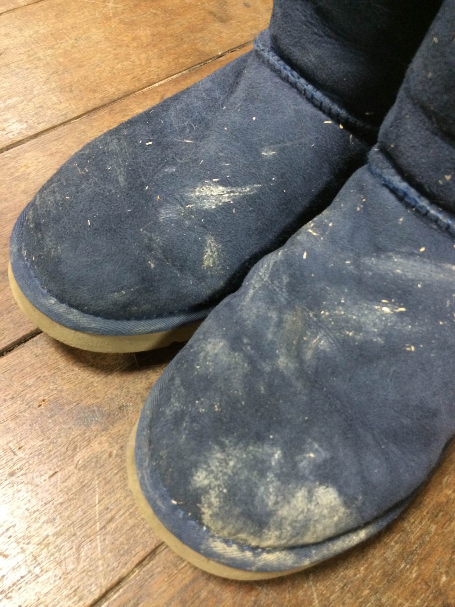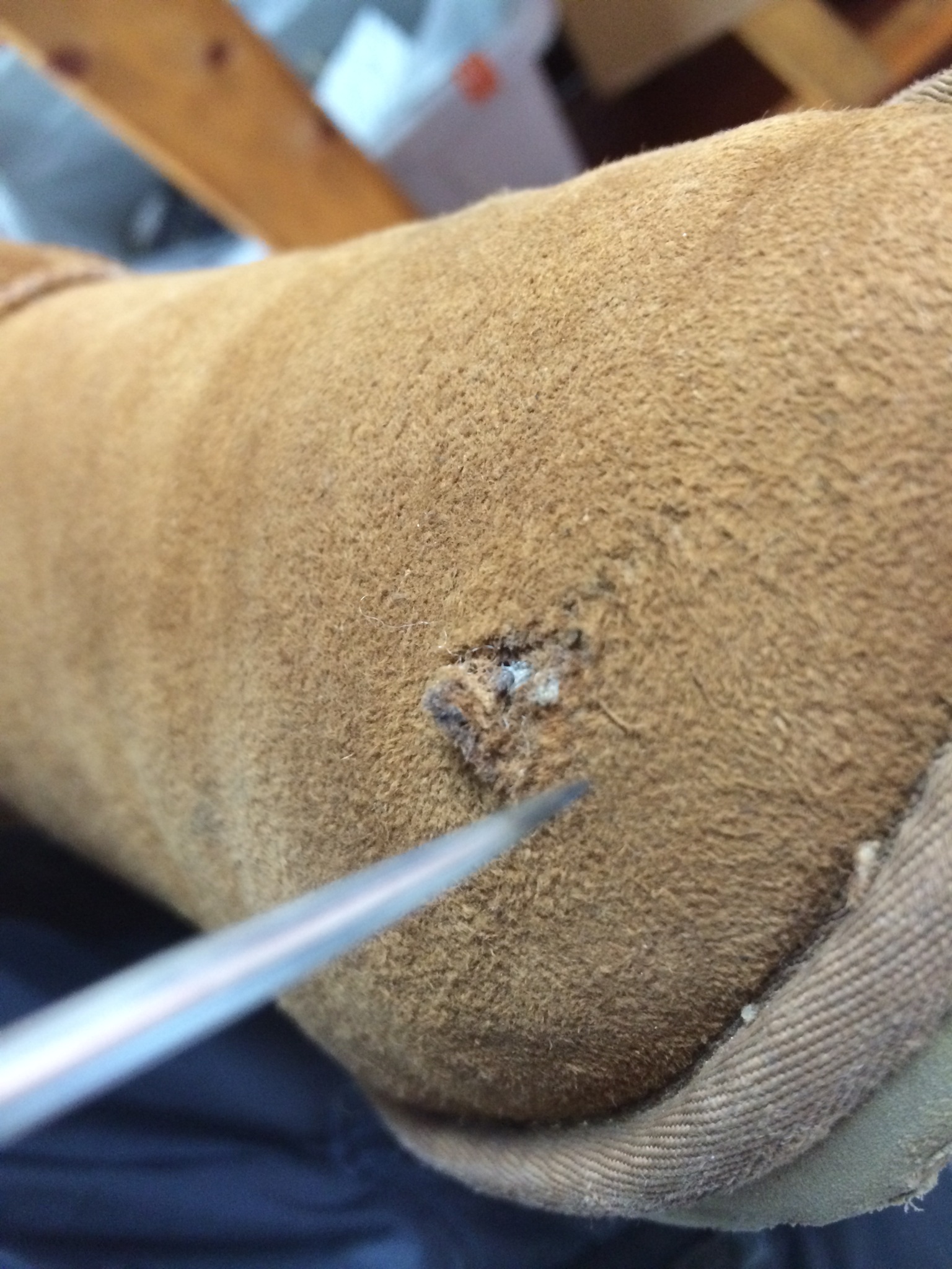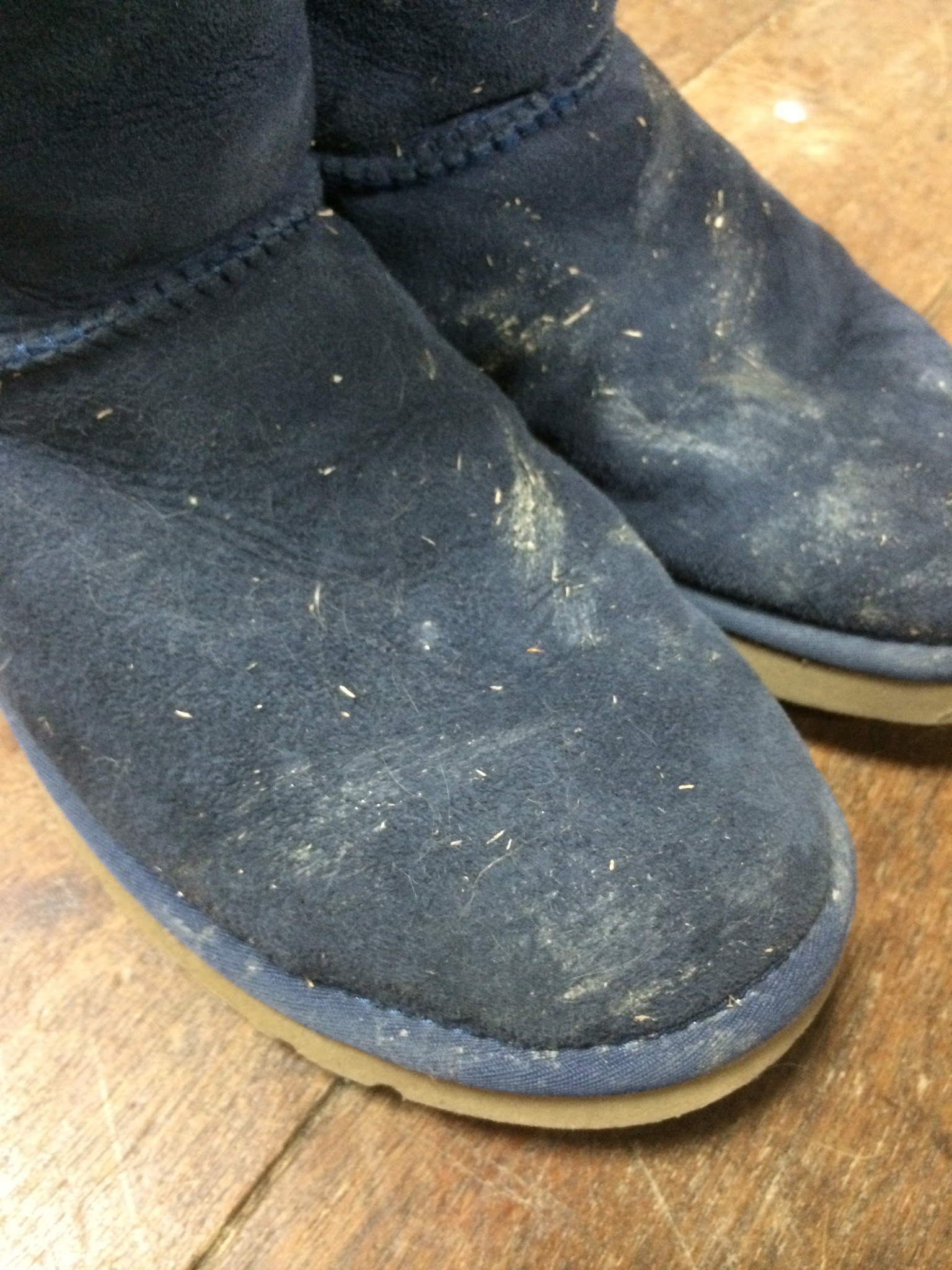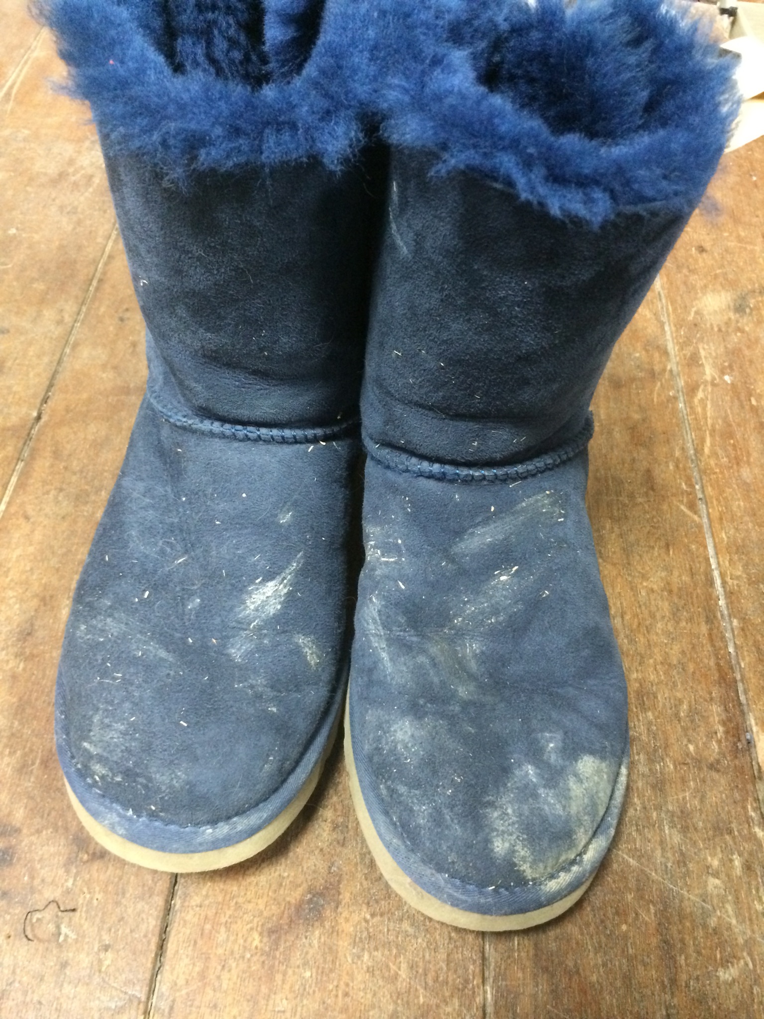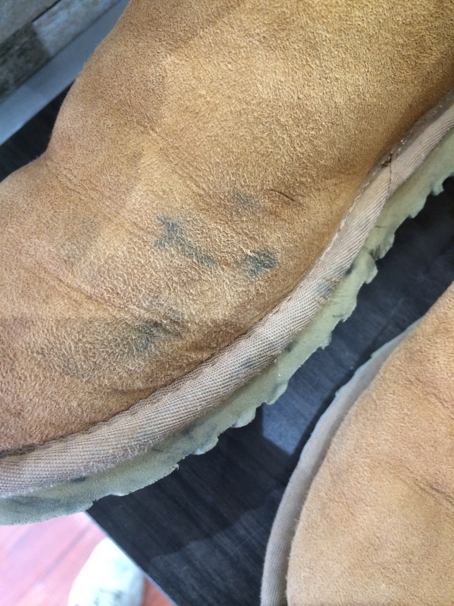アグ(UGG) 黒い汚れクリーニング+つま先穴補修