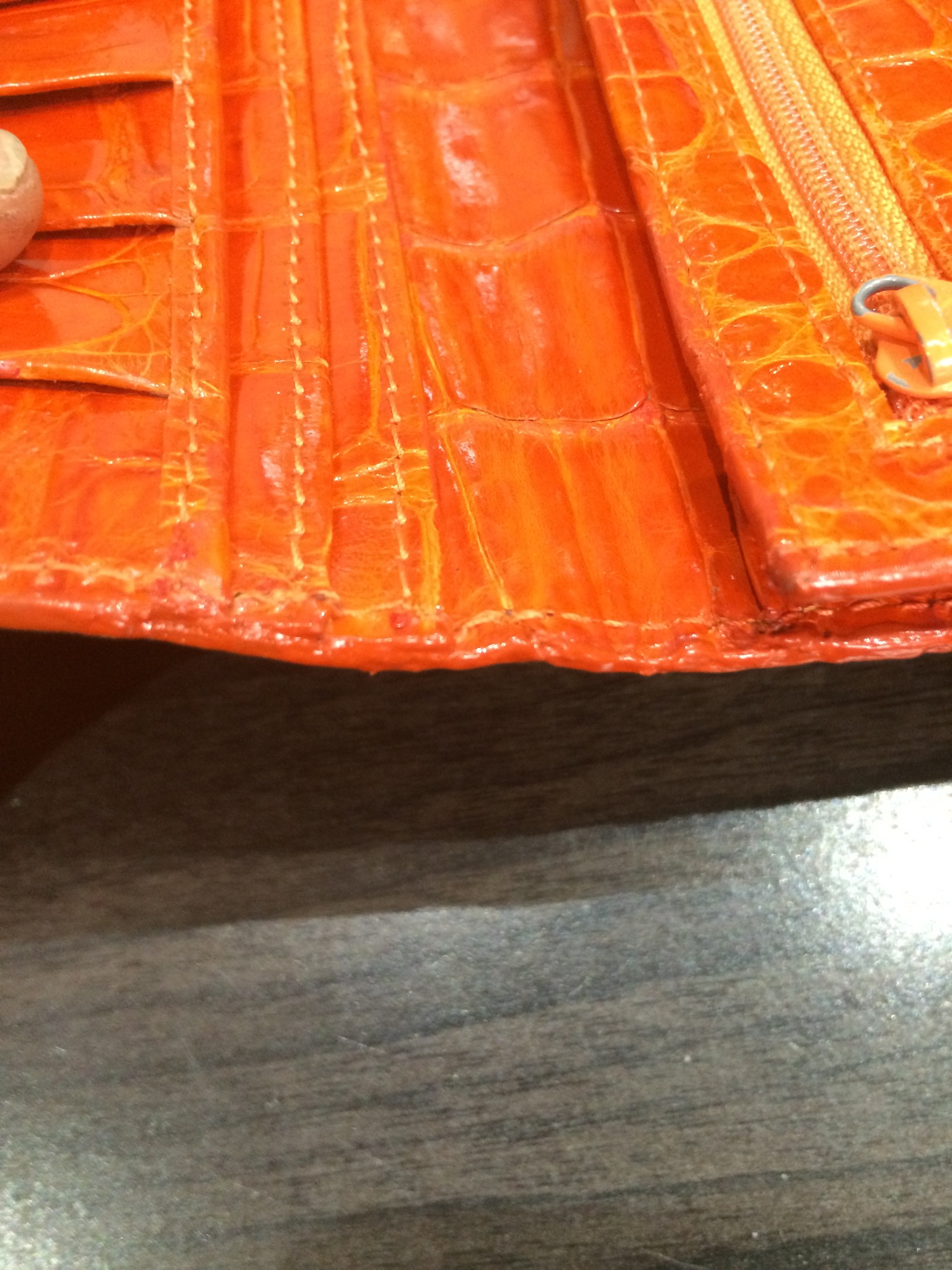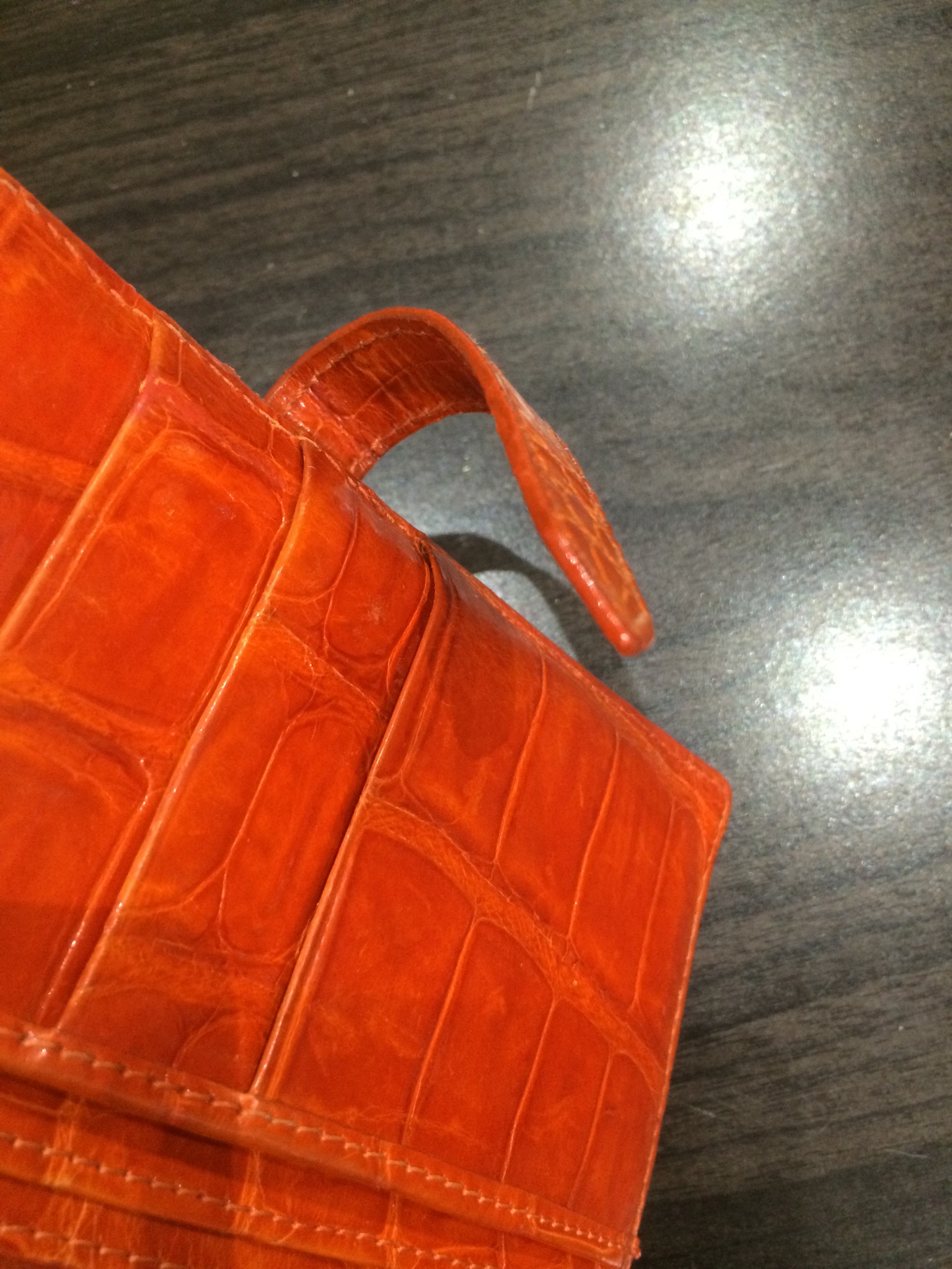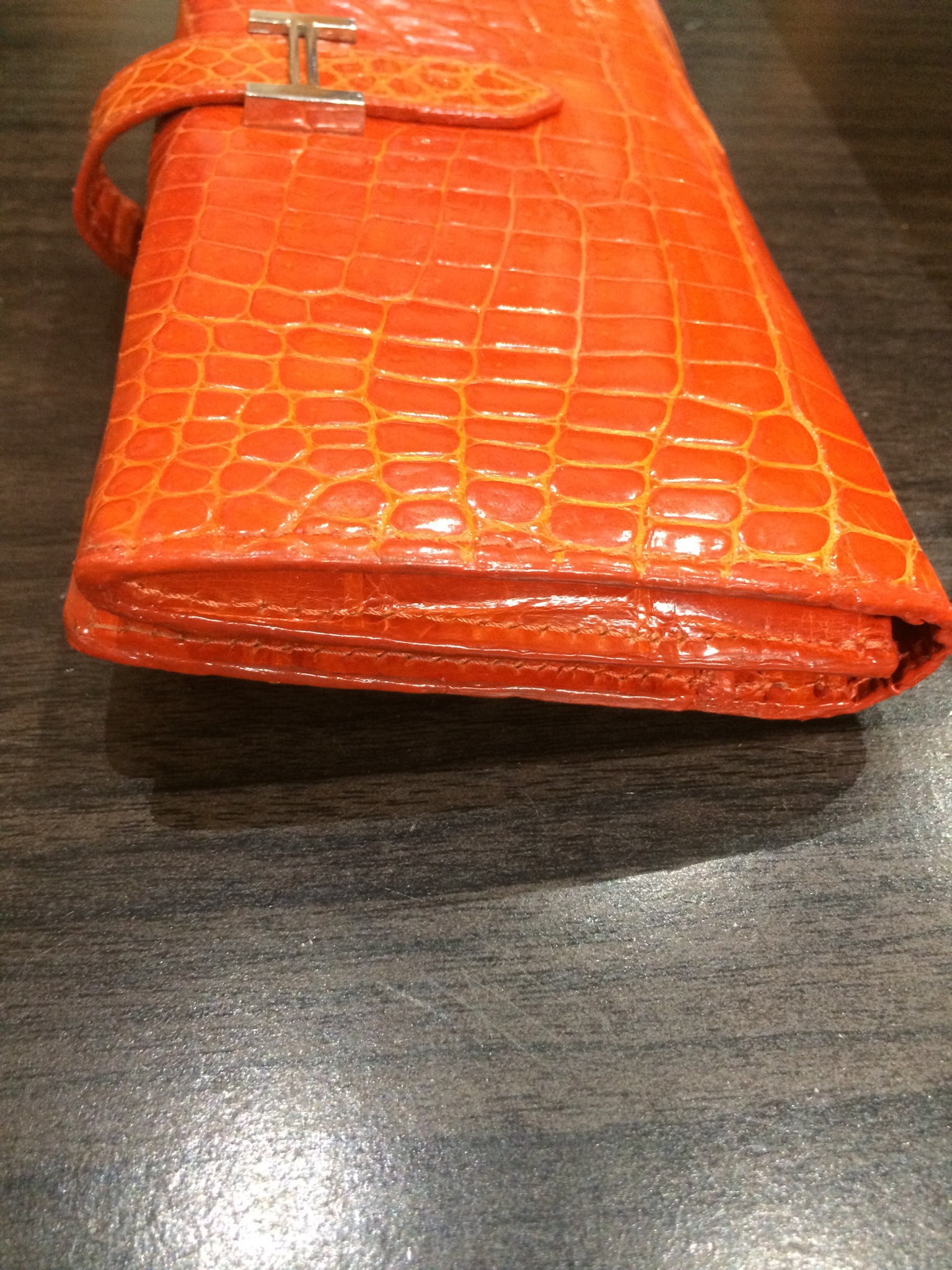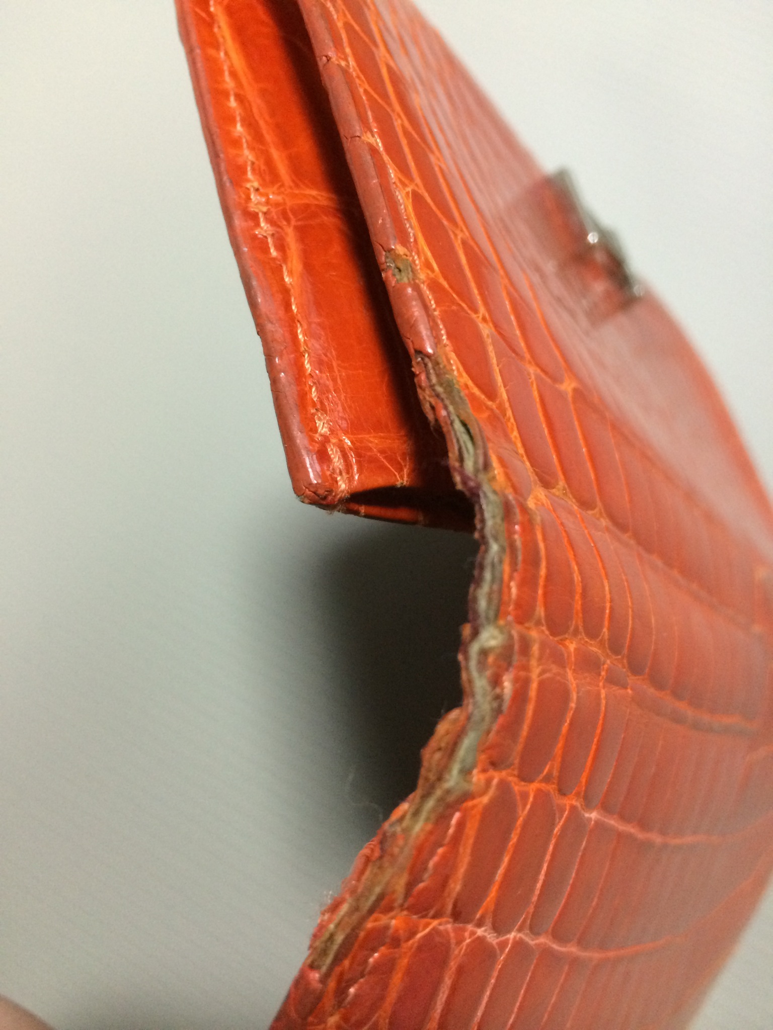 エルメス 財布(オレンジ) コバ(木端)再生コーティング修理+全体メンテナンス