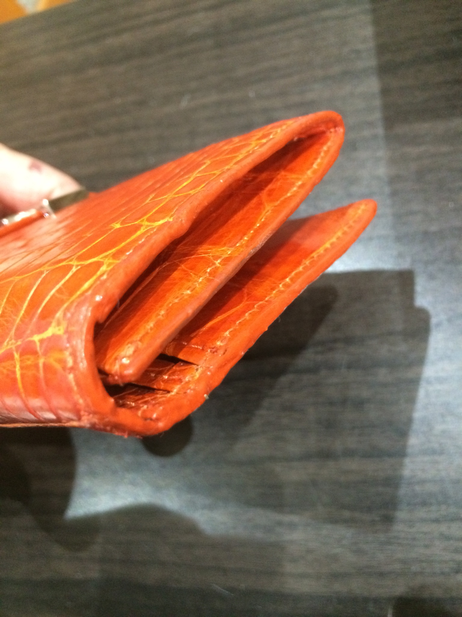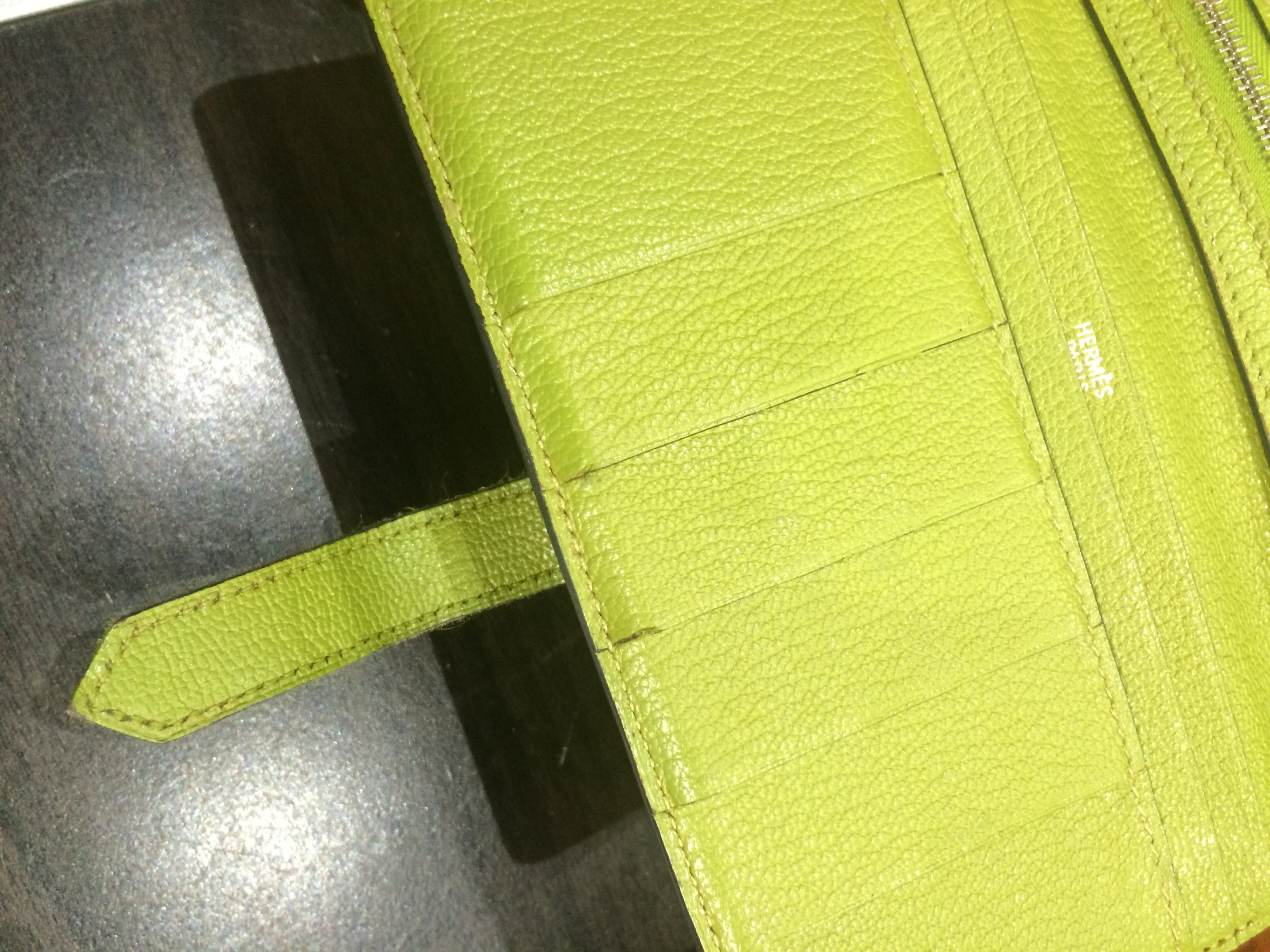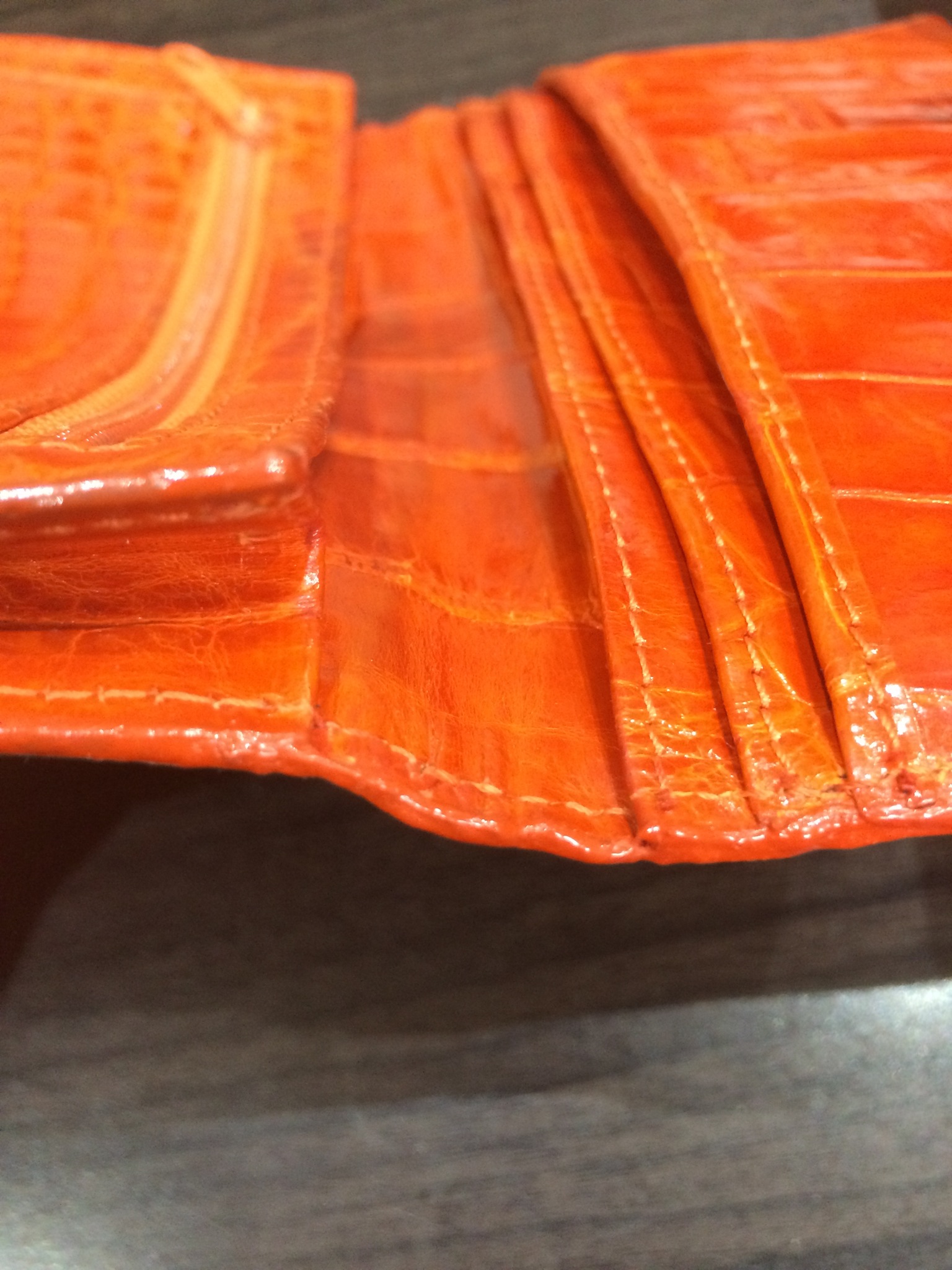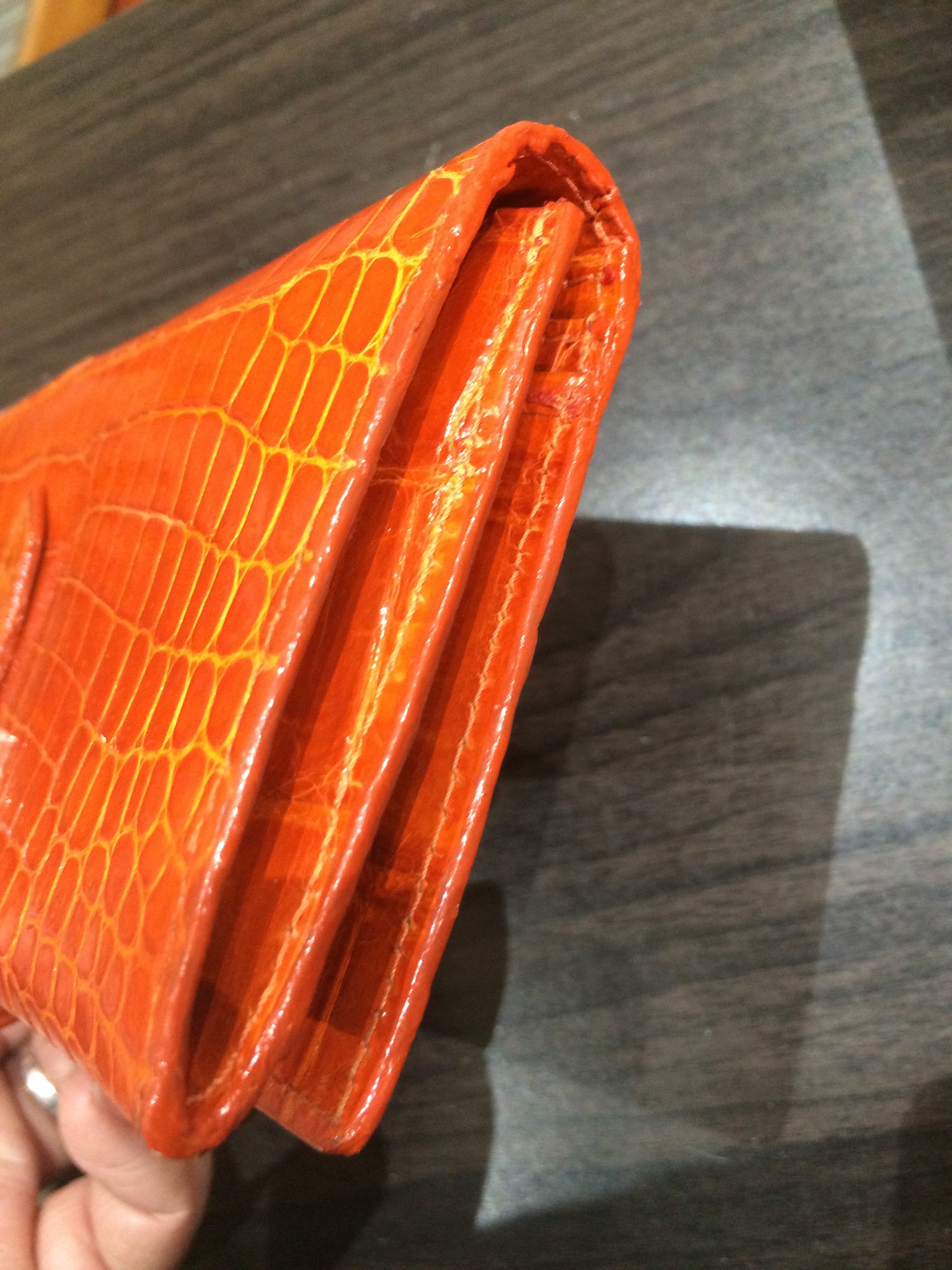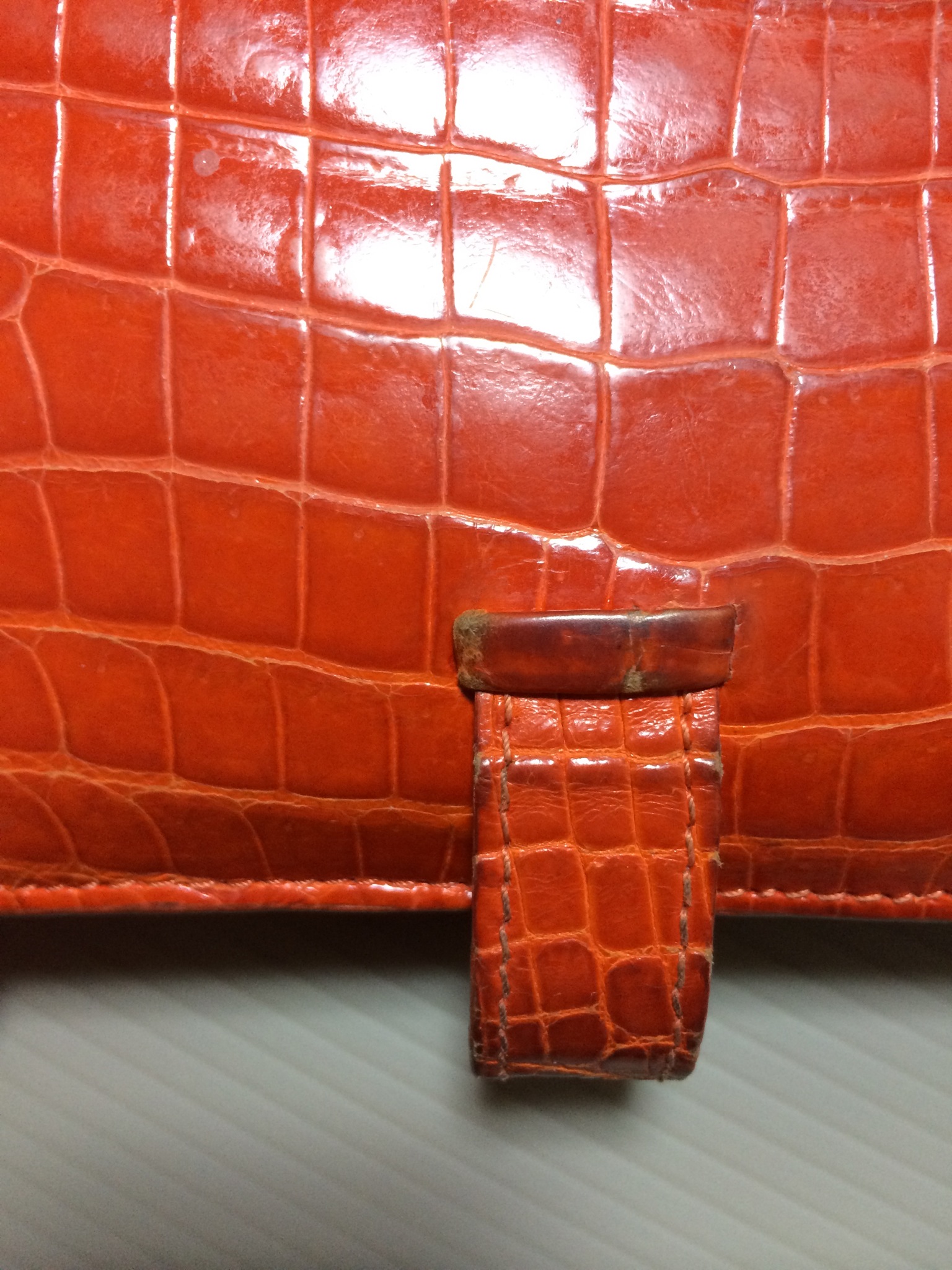 エルメス 財布(オレンジ) コバ(木端)再生コーティング修理+全体メンテナンス