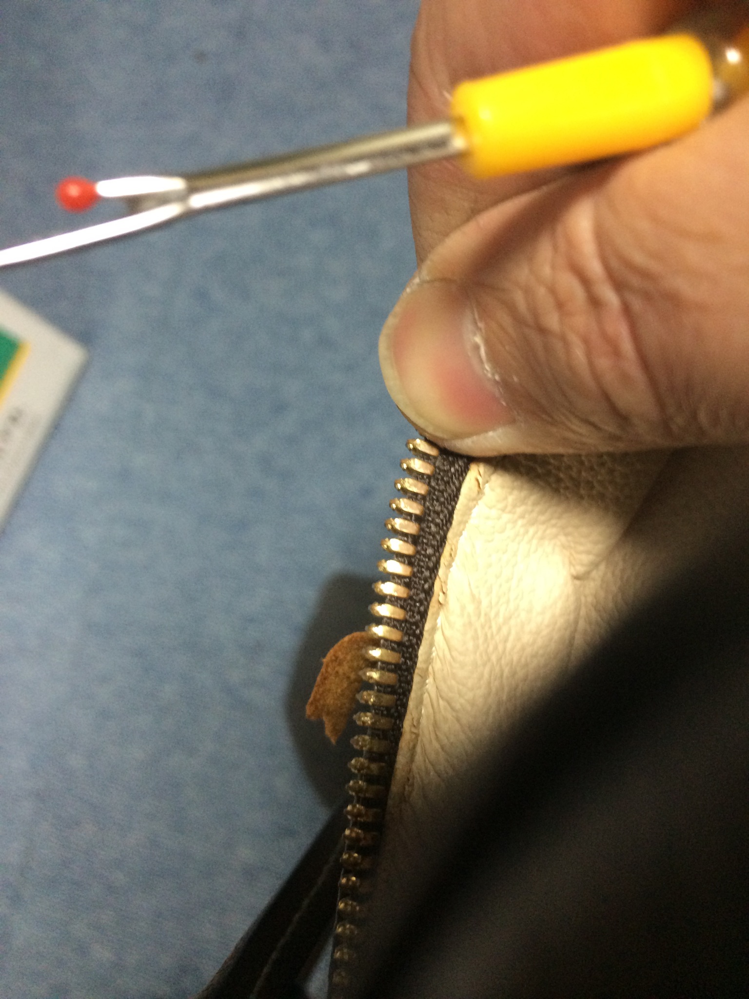 ↑布地が裂けてきているので、こういう場合はファスナー交換になります。