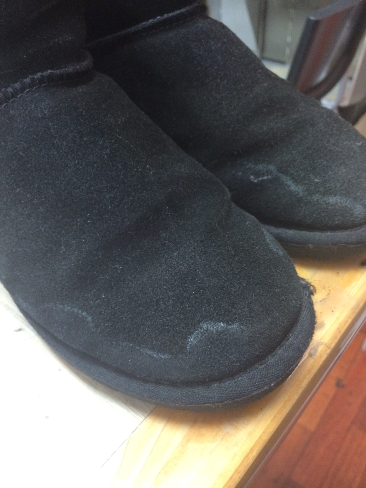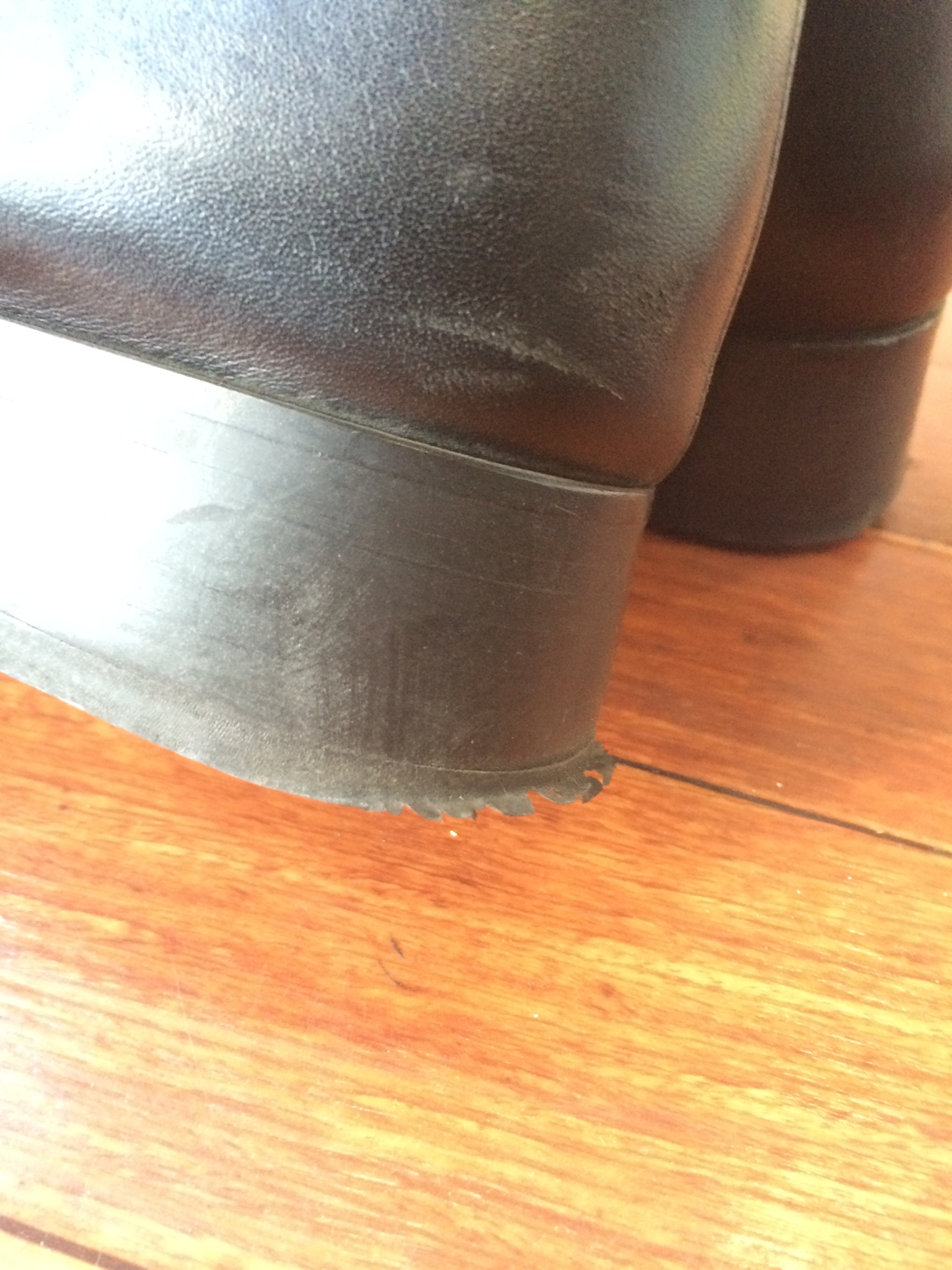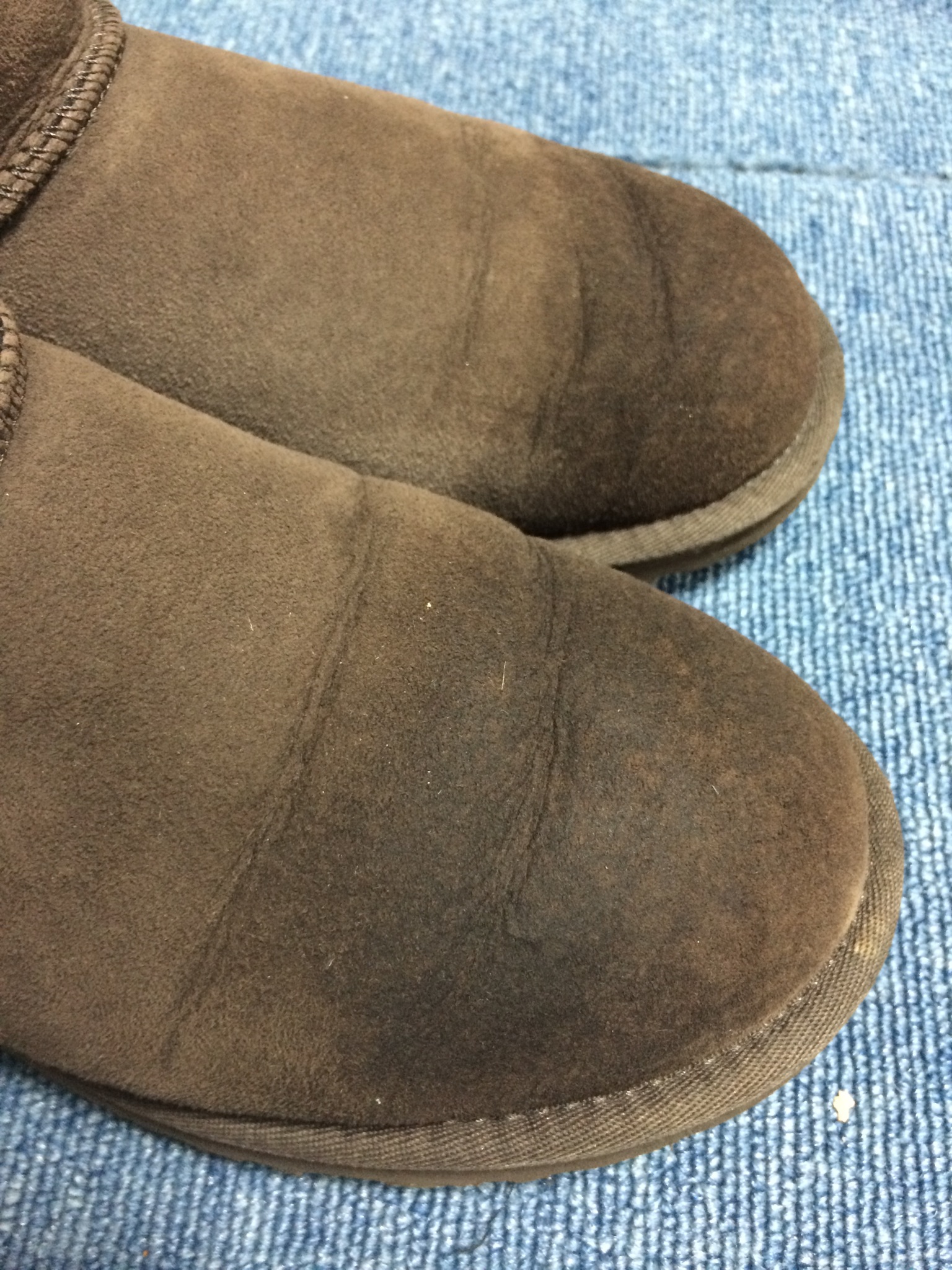 長年履いてきての汚れなので、クリーニングする価値あるかなあと不安そうでした(´・ω・`)