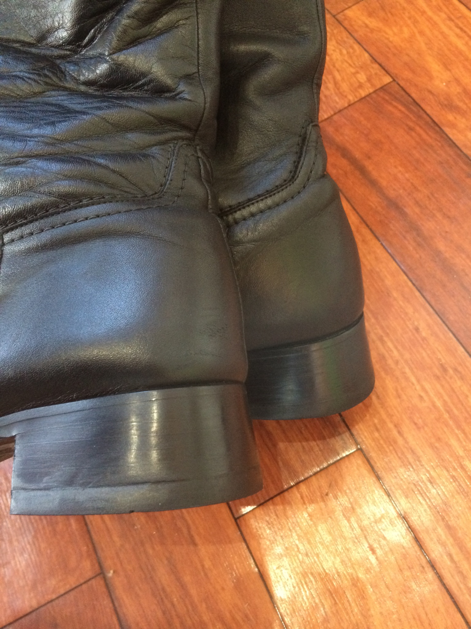 黒色 ロングブーツ かかと修理 です。