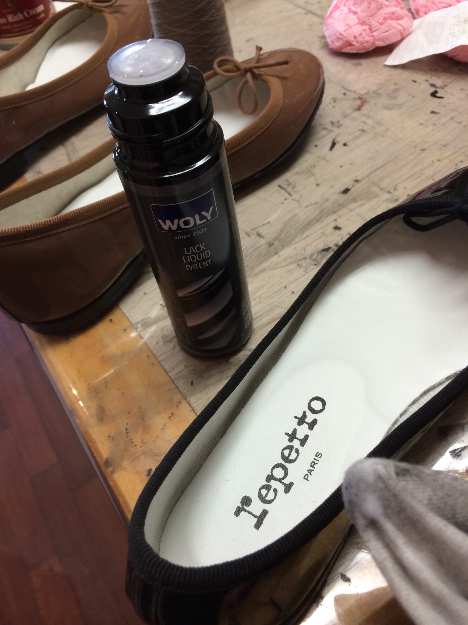 新品の靴でもエナメル用のクリームで栄養を与え仕上げます。