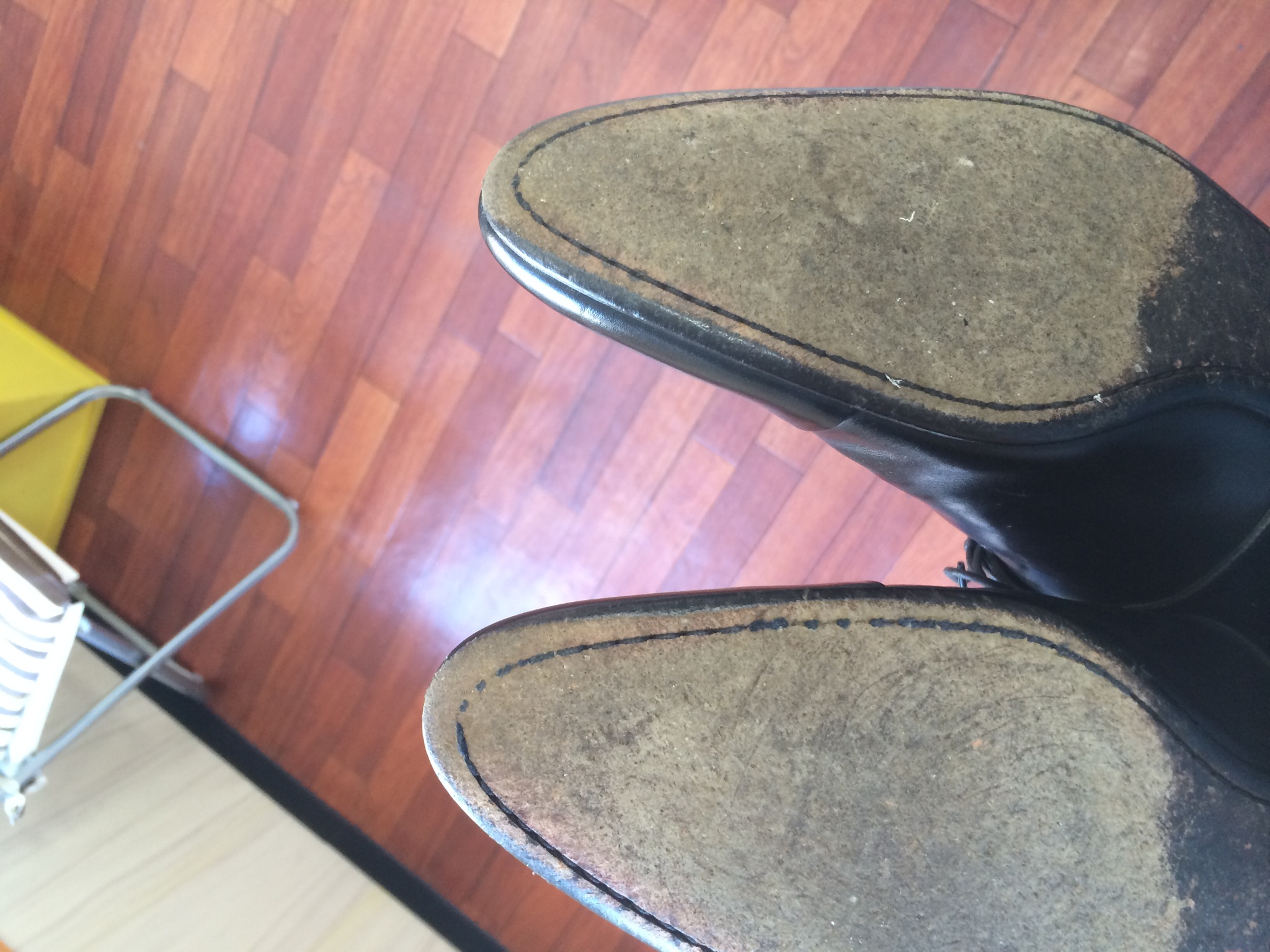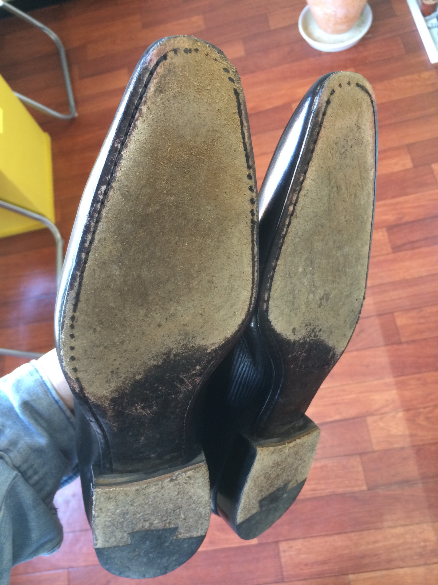 ハーフソールもこれくらい使ってから(2~3回履いたそうです)が、修理する側の気持ちとしては
