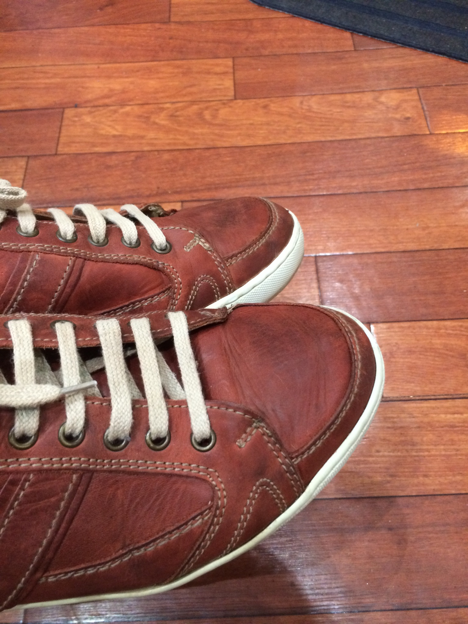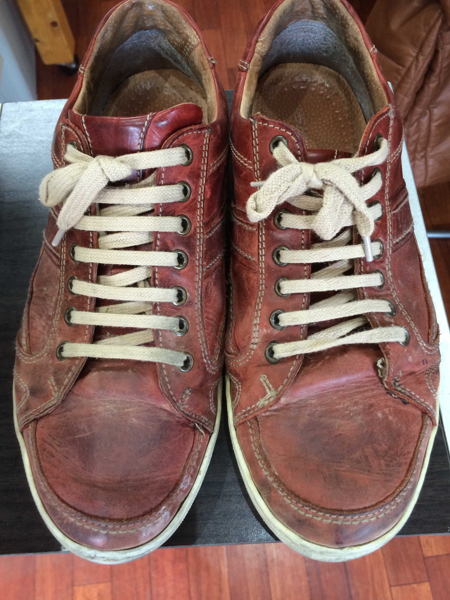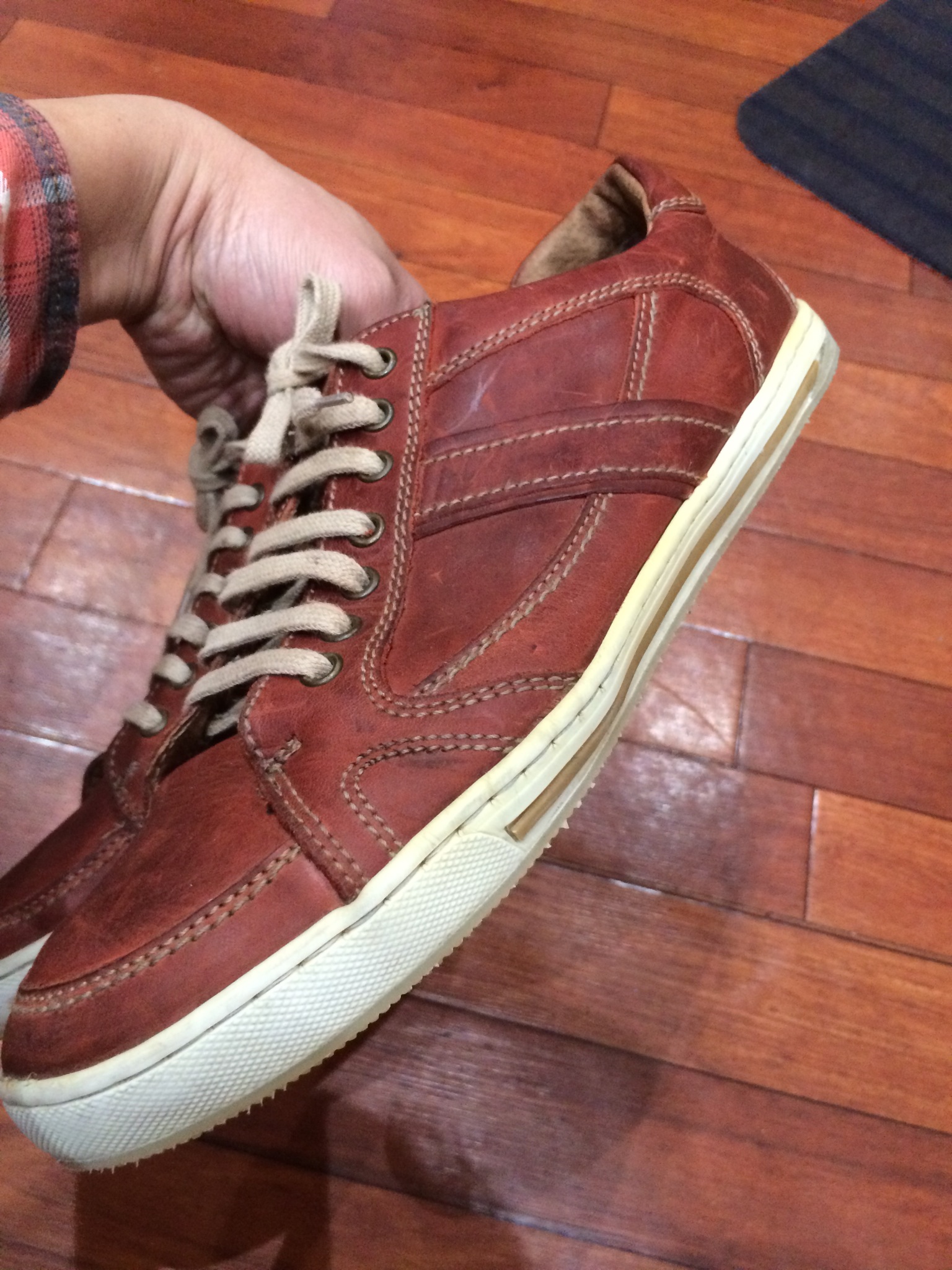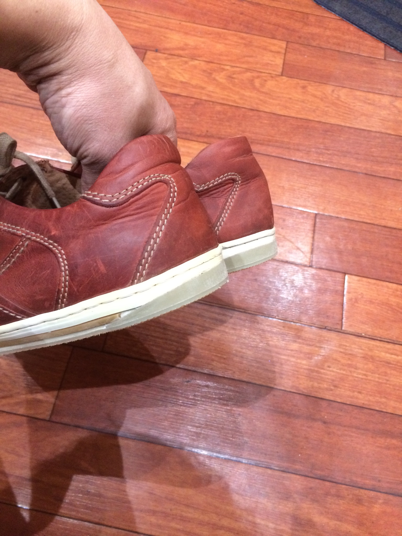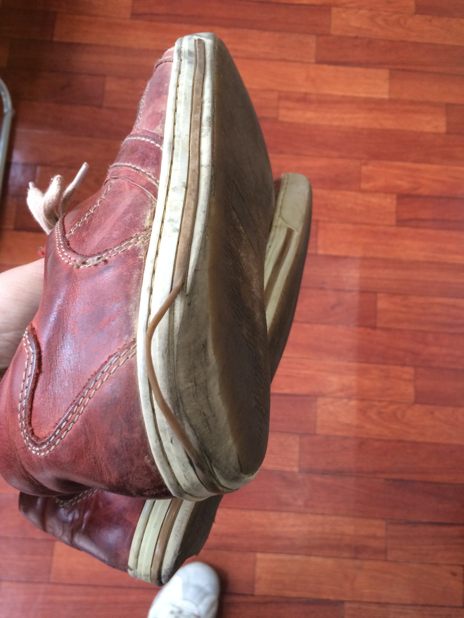 履き口の止め金具が外れているので、ここを直していきます。