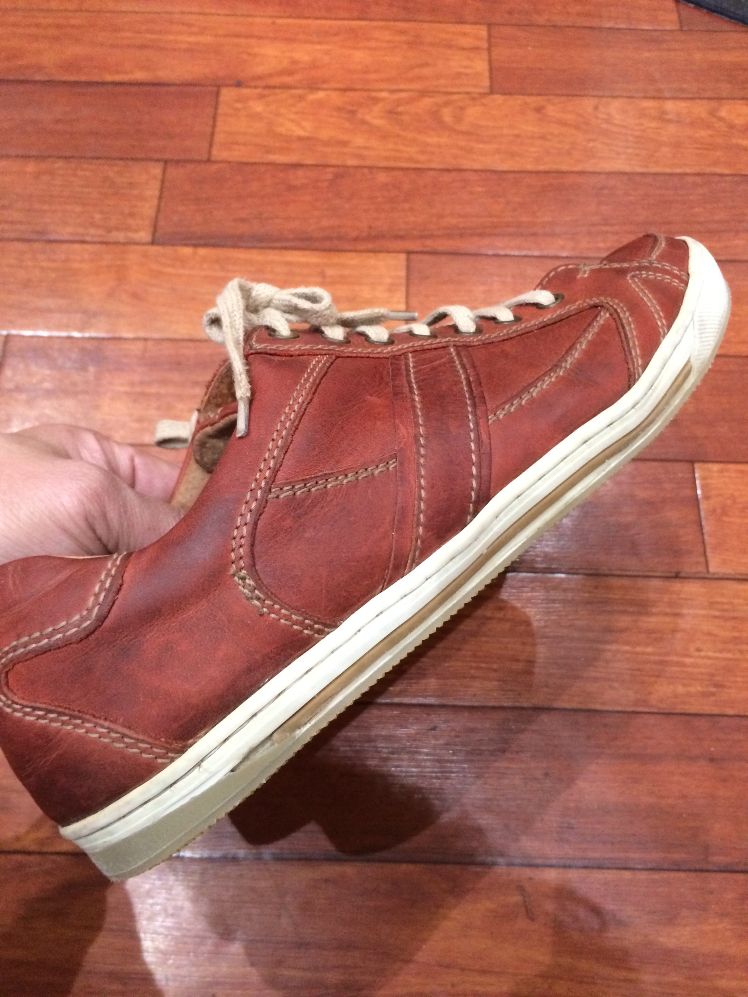 付いてた穴を見ると何ともなく、カシメの内側の座板ごと飛び出してきたようです。