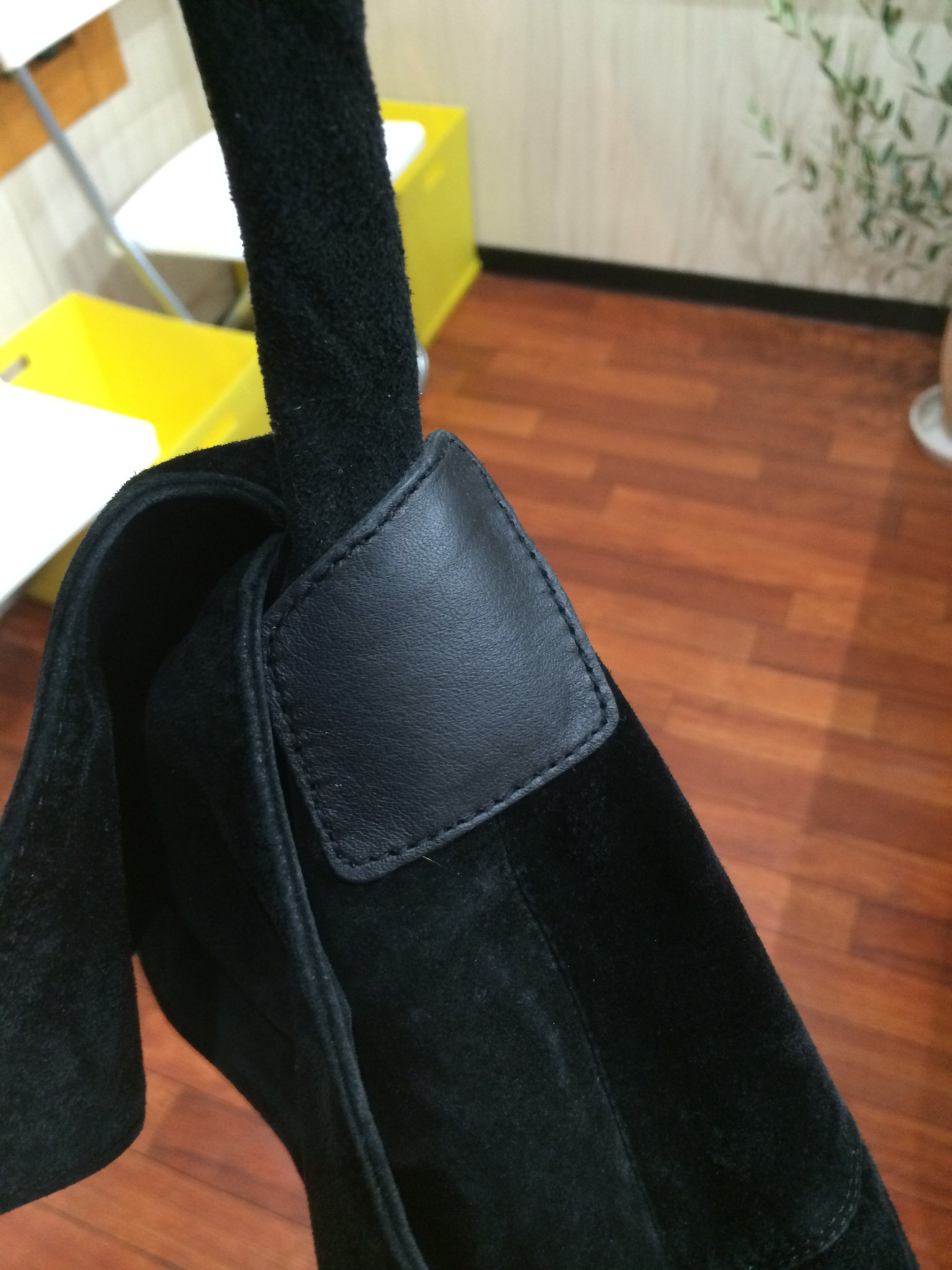 そこに濃茶のスエード革使いました。