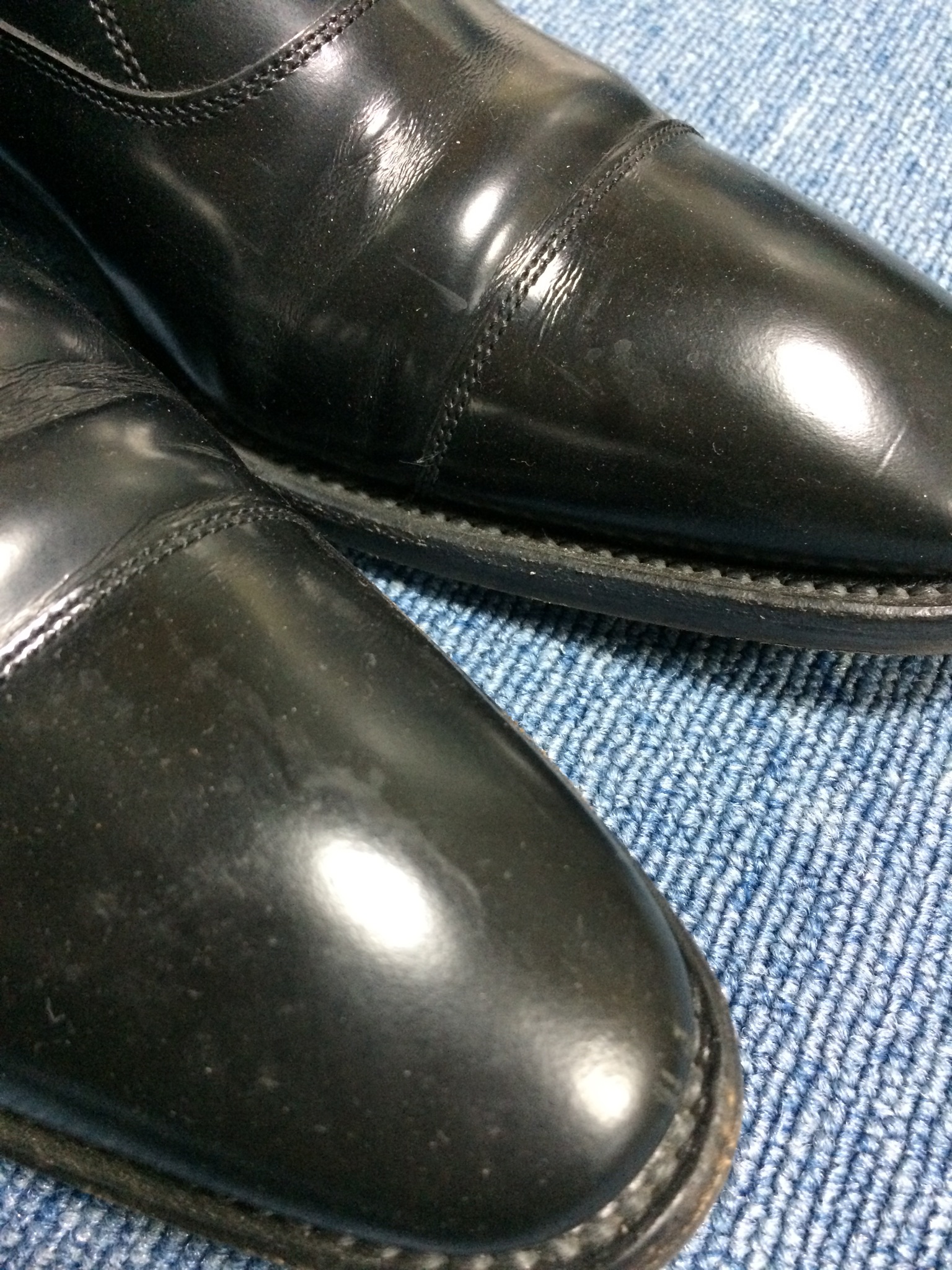 このまま履き始めたら靴の寿命、一気に縮まりますよ~ん、ご自身で革靴洗うときは注意してくだいね~(‘ω’)ノ