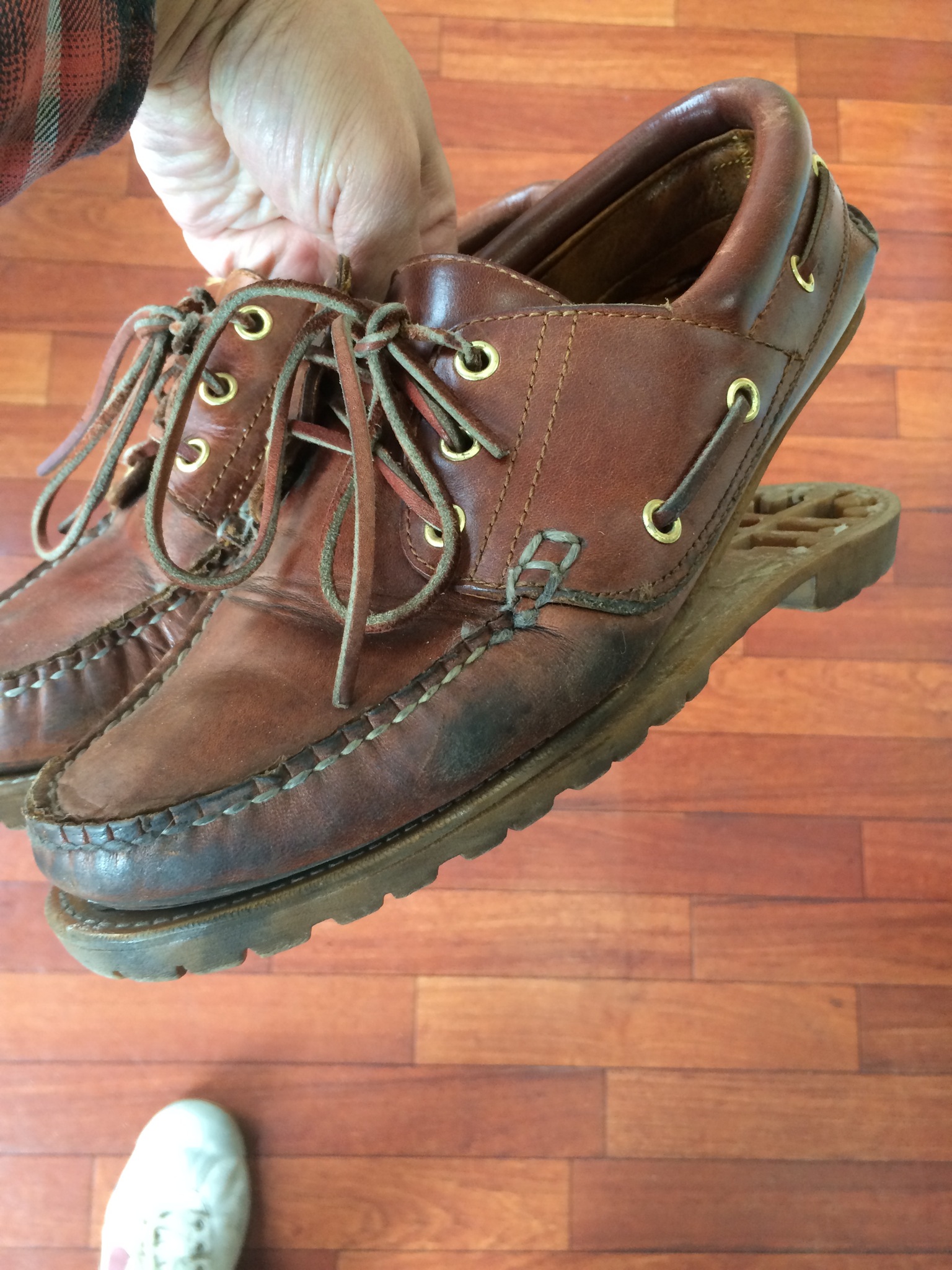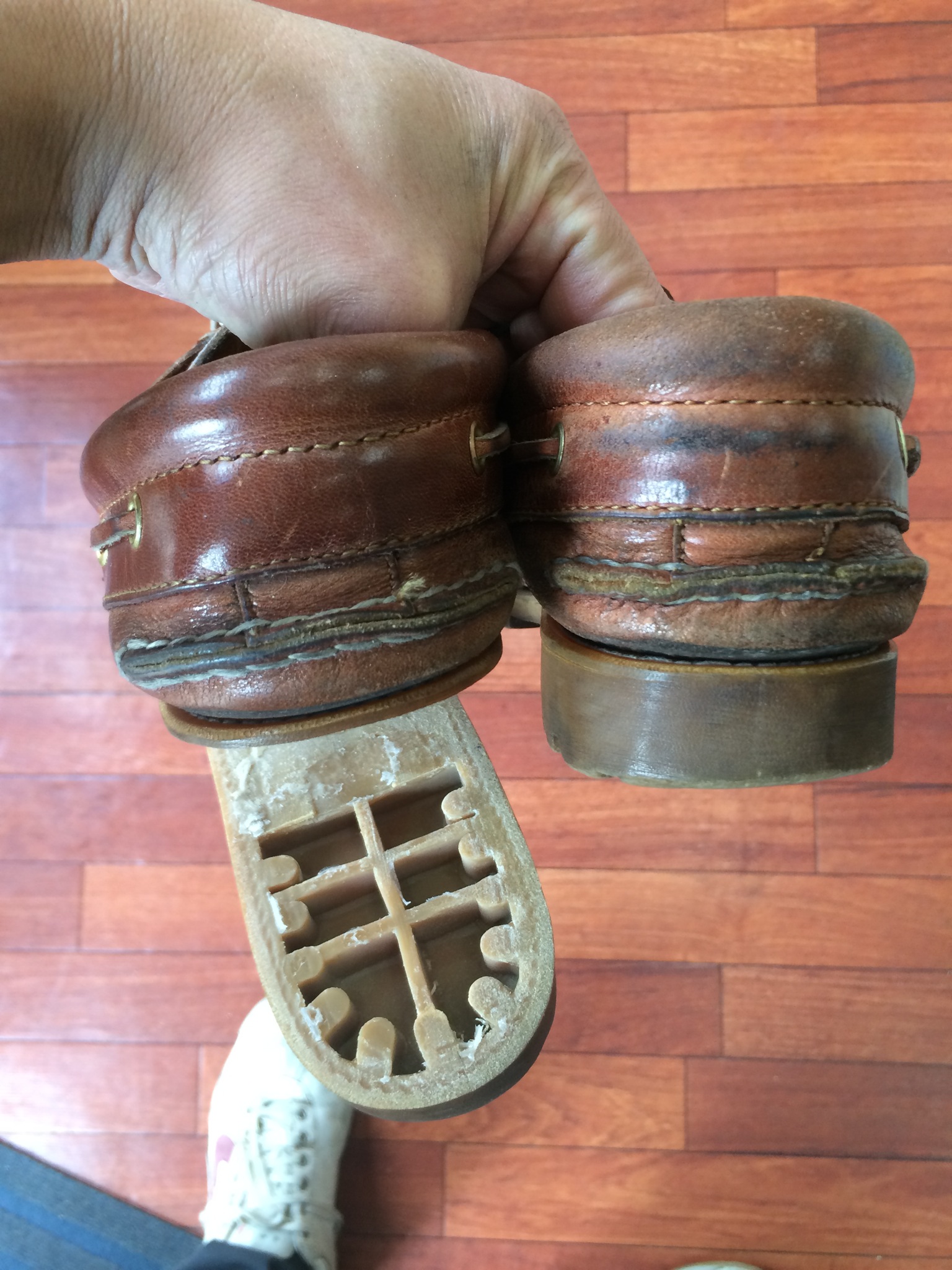 底をばらし、革を継ぎ足し、元に戻したのがこの靴なのです!