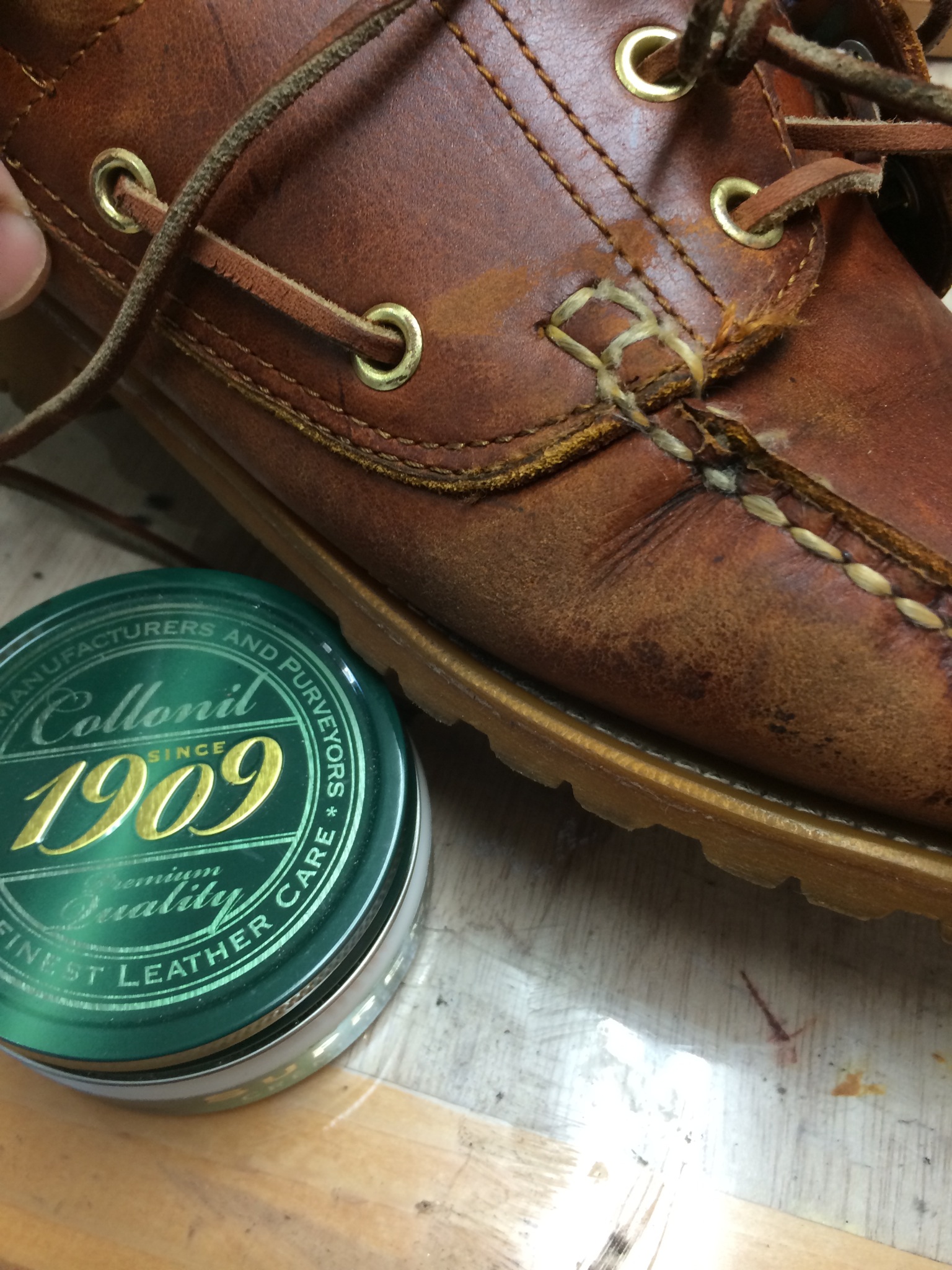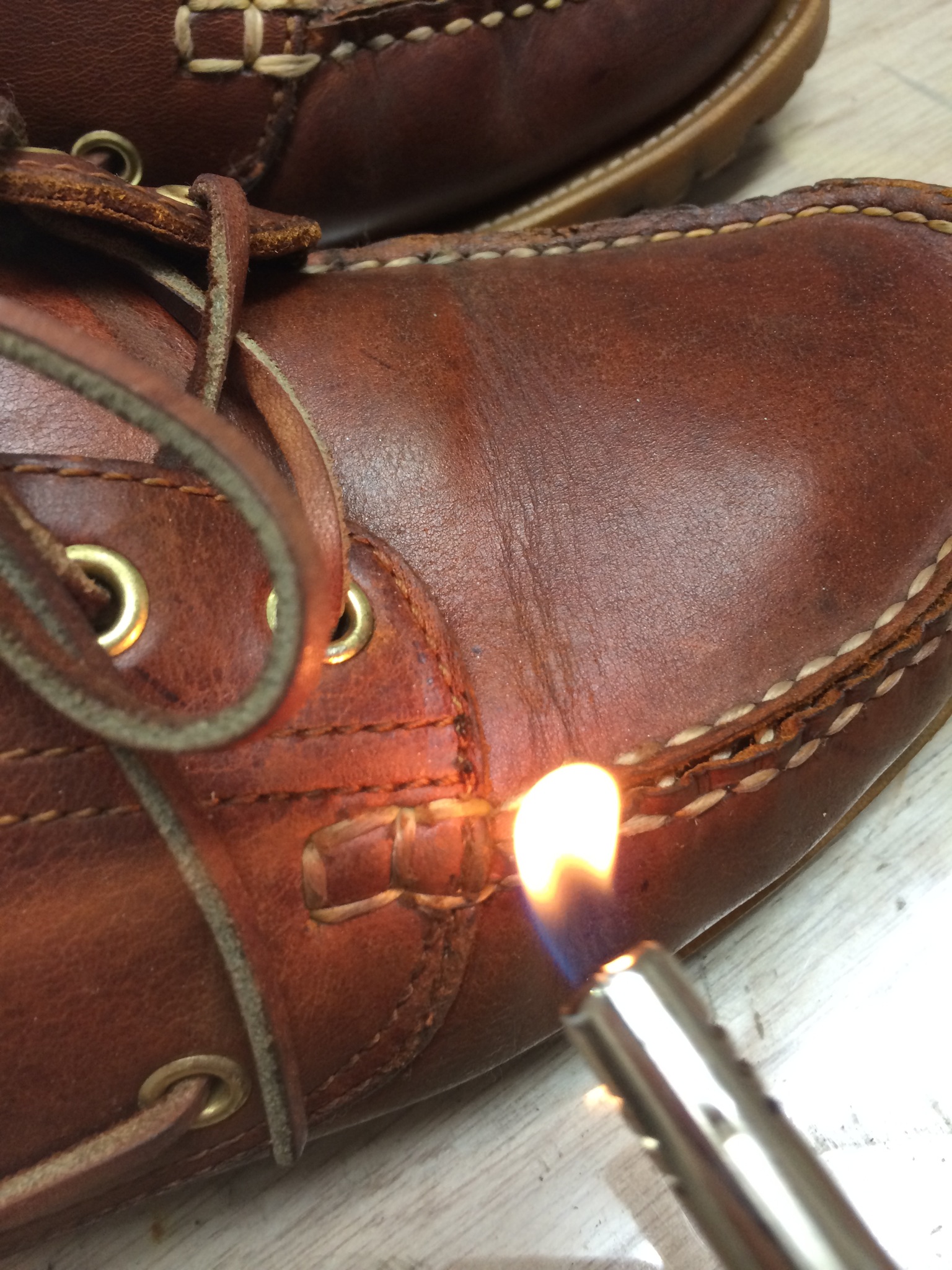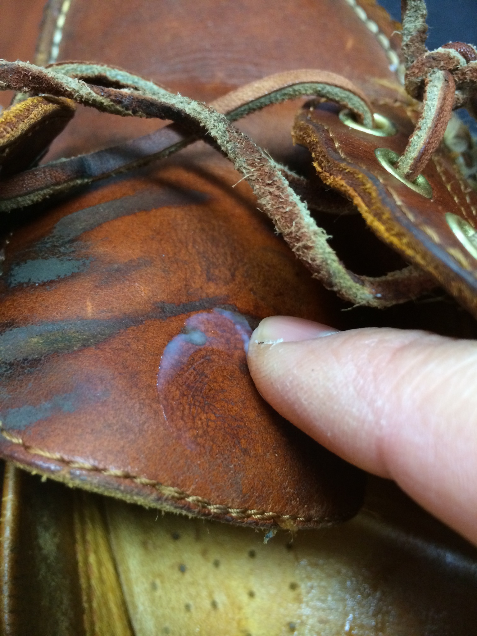 ↑つま先部分の革にその時の手術の跡があります。