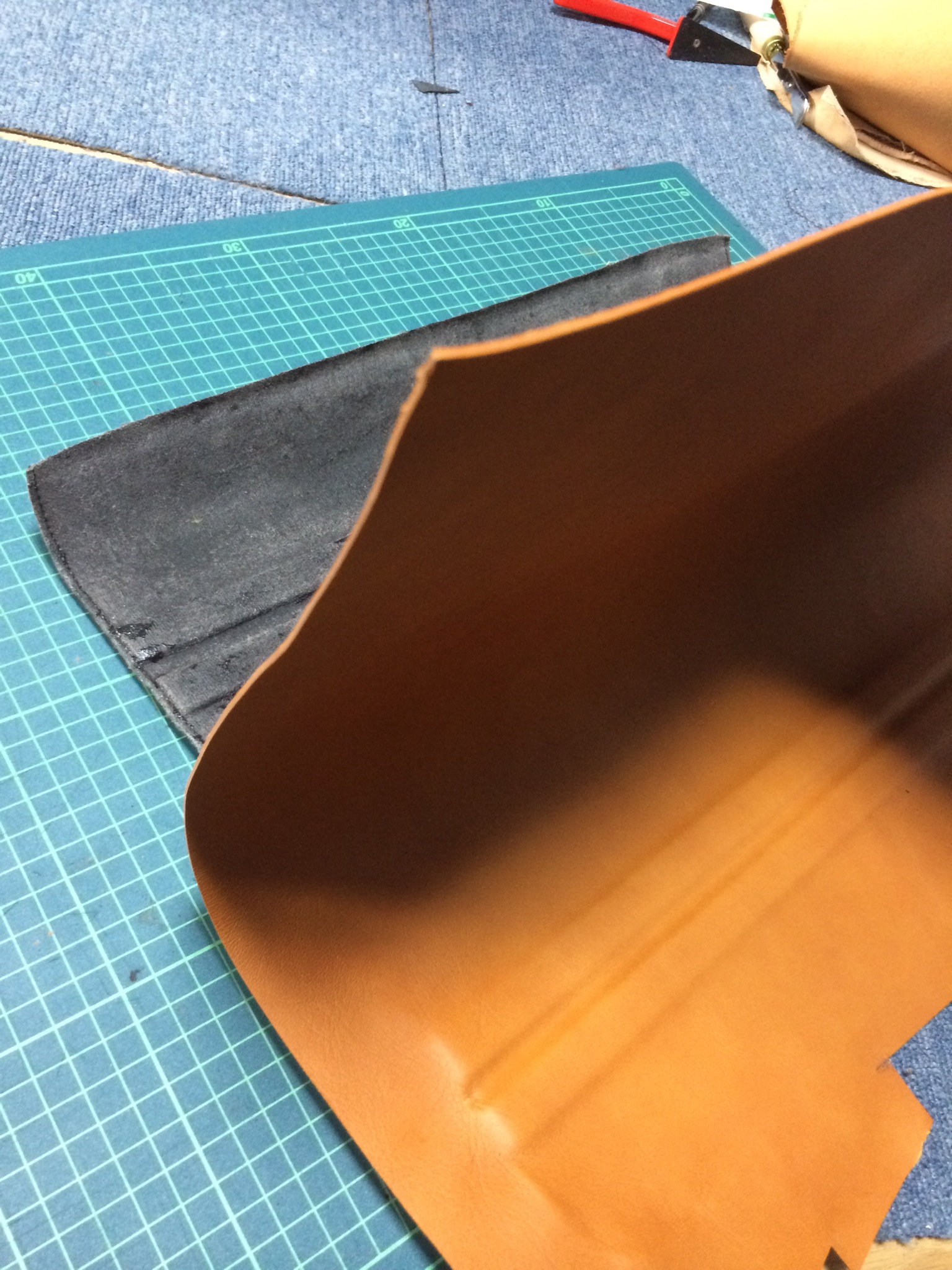 裏の合皮部分を、全部革で隠しちゃいます~!
