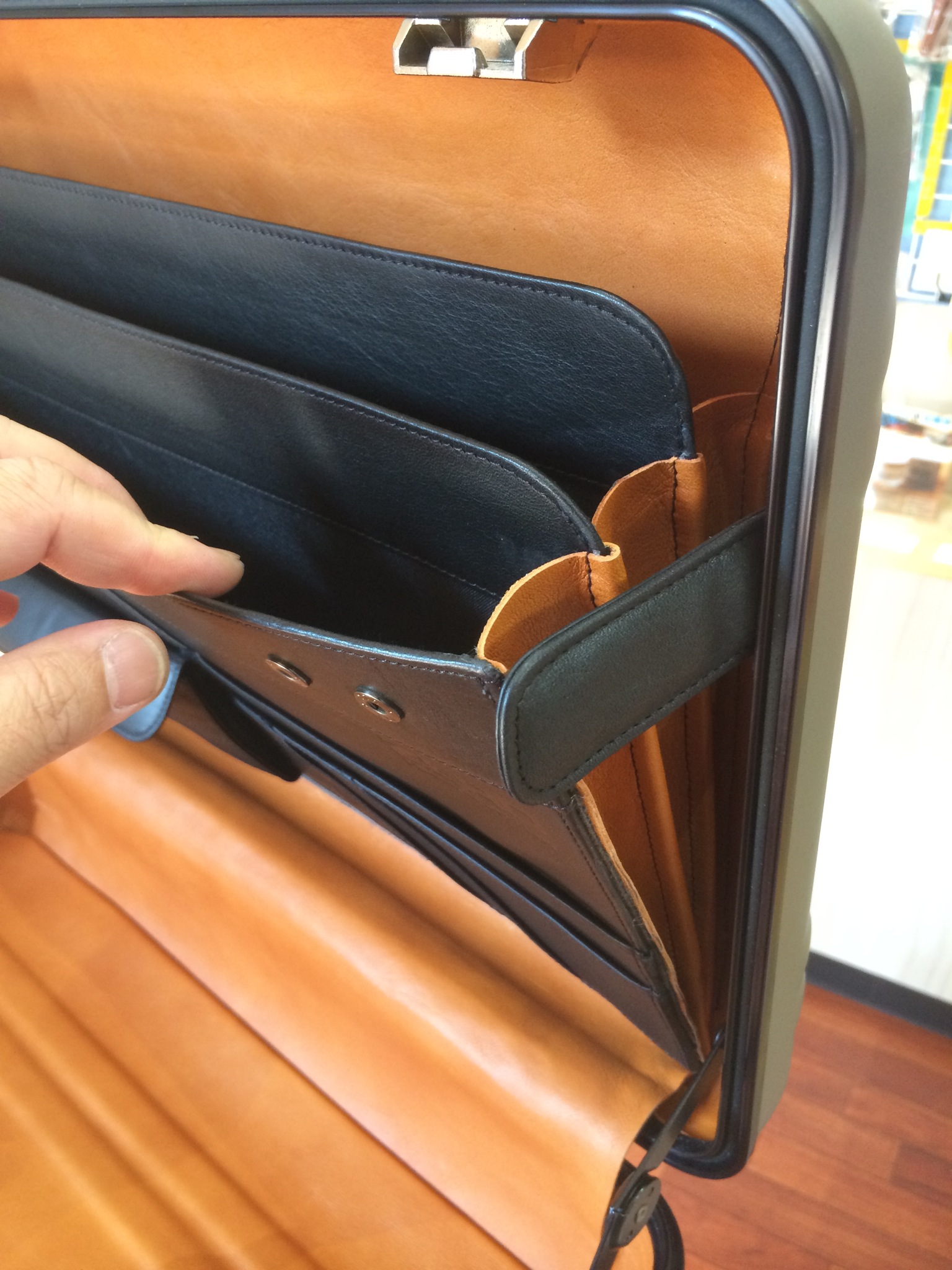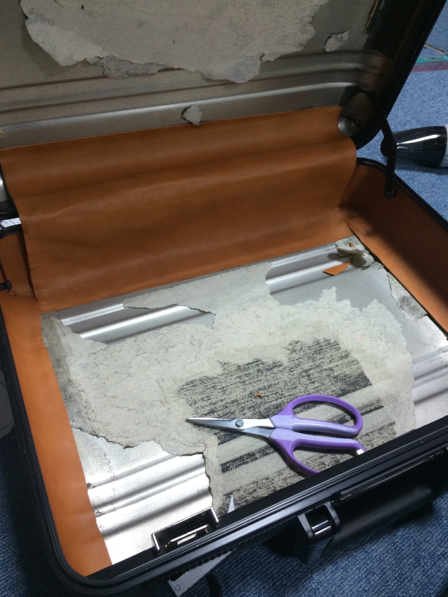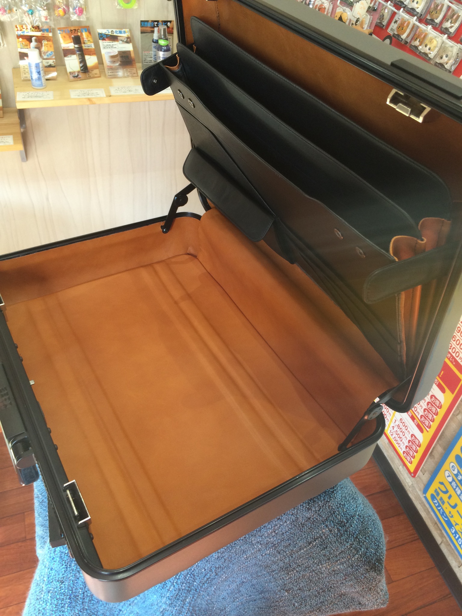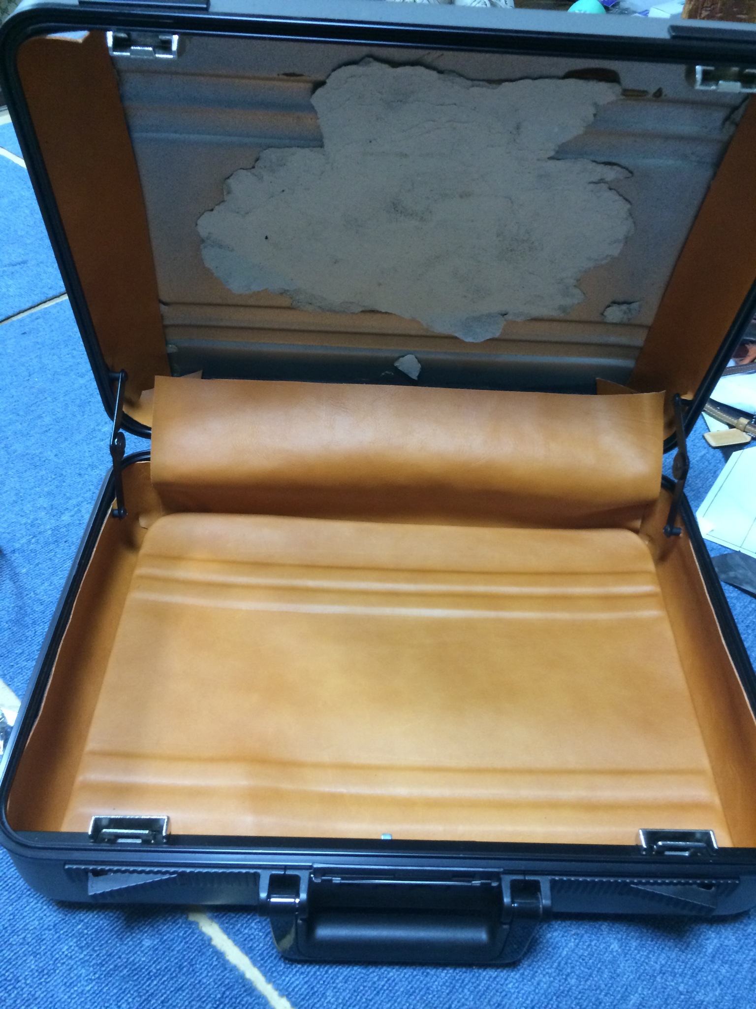 ゼロハリバートン 内側合皮劣化の為 本革張替修理②