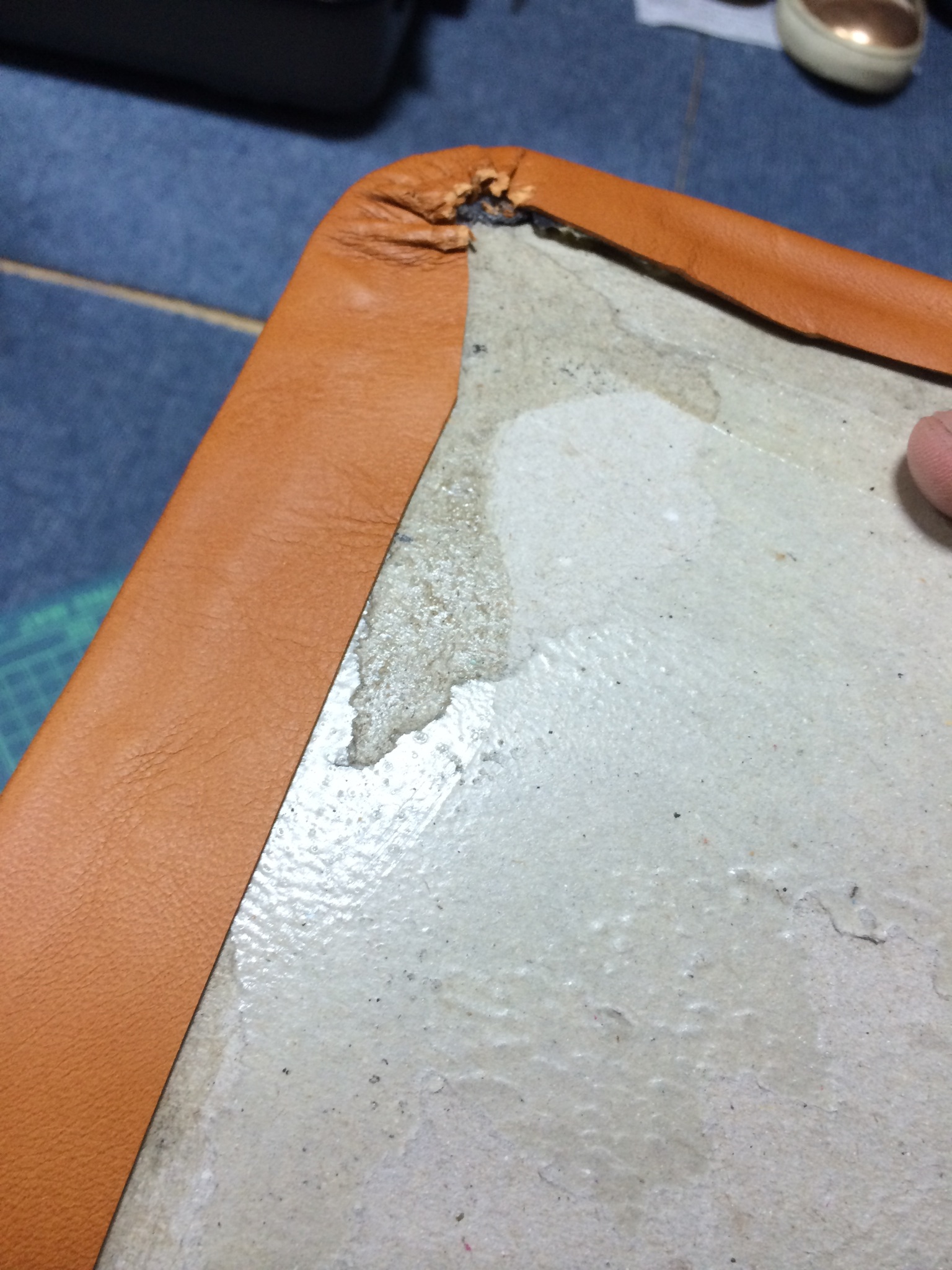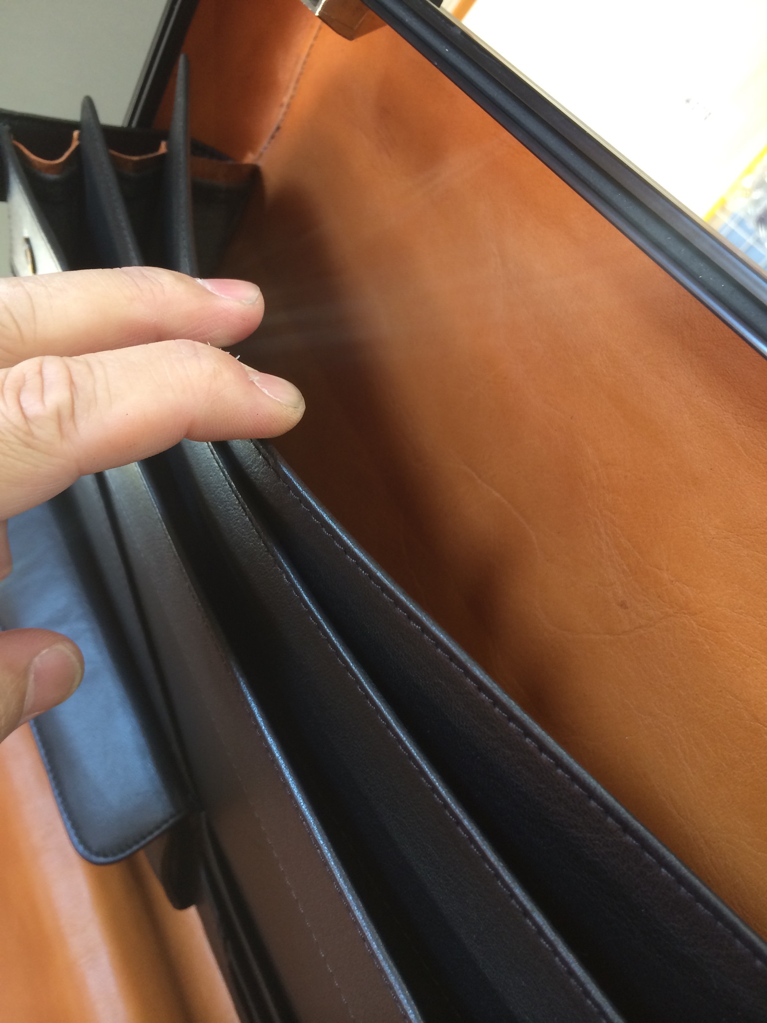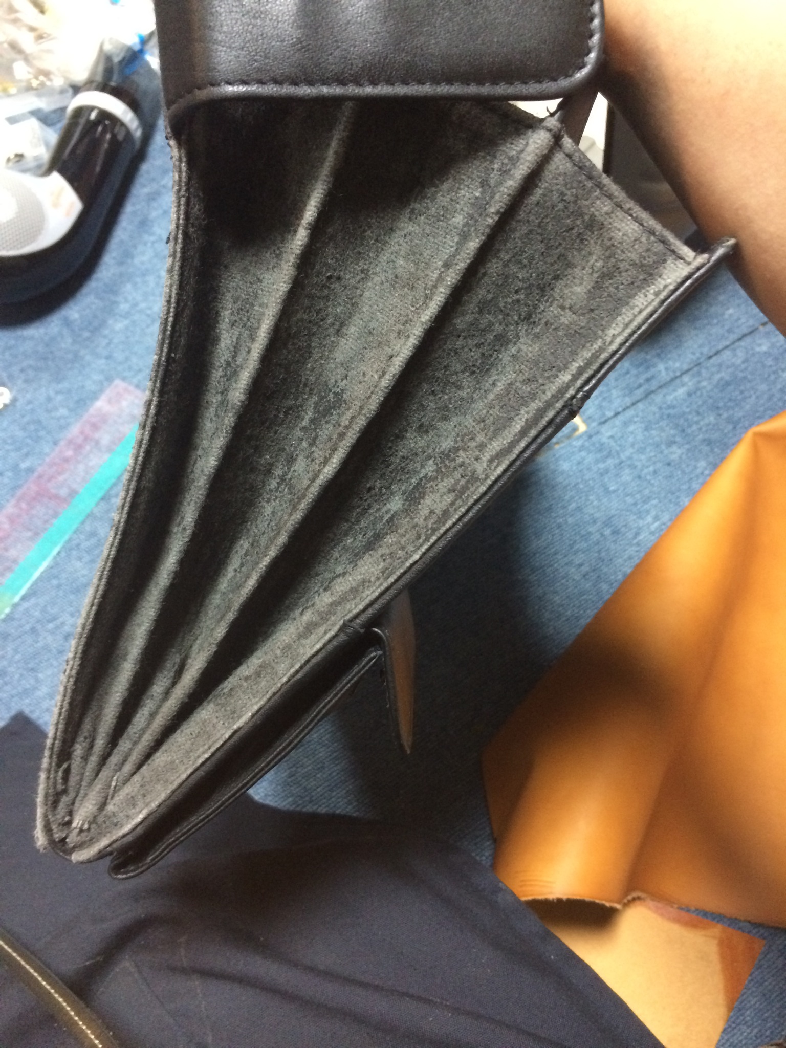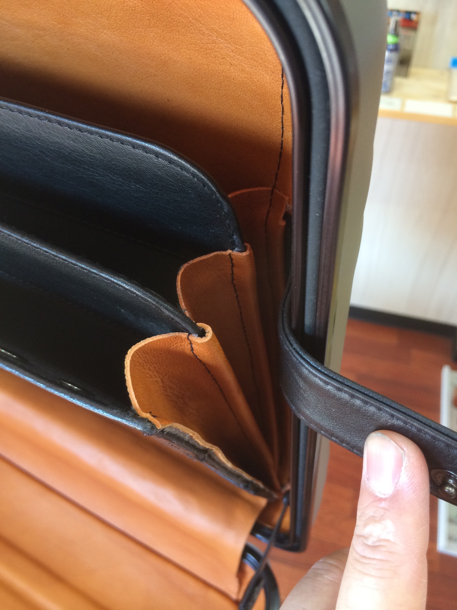 ゼロハリバートン 内側合皮劣化の為 本革張替修理②