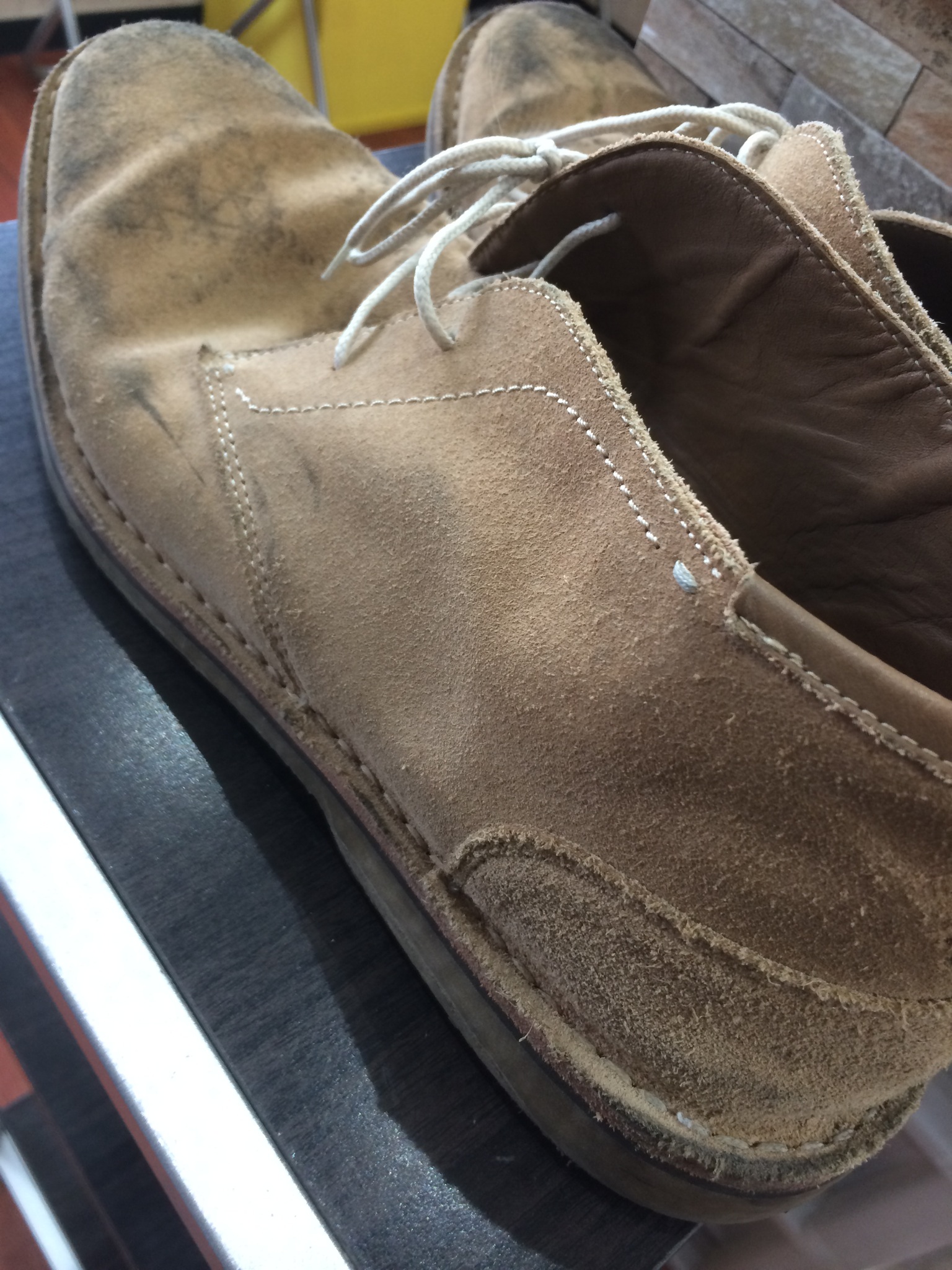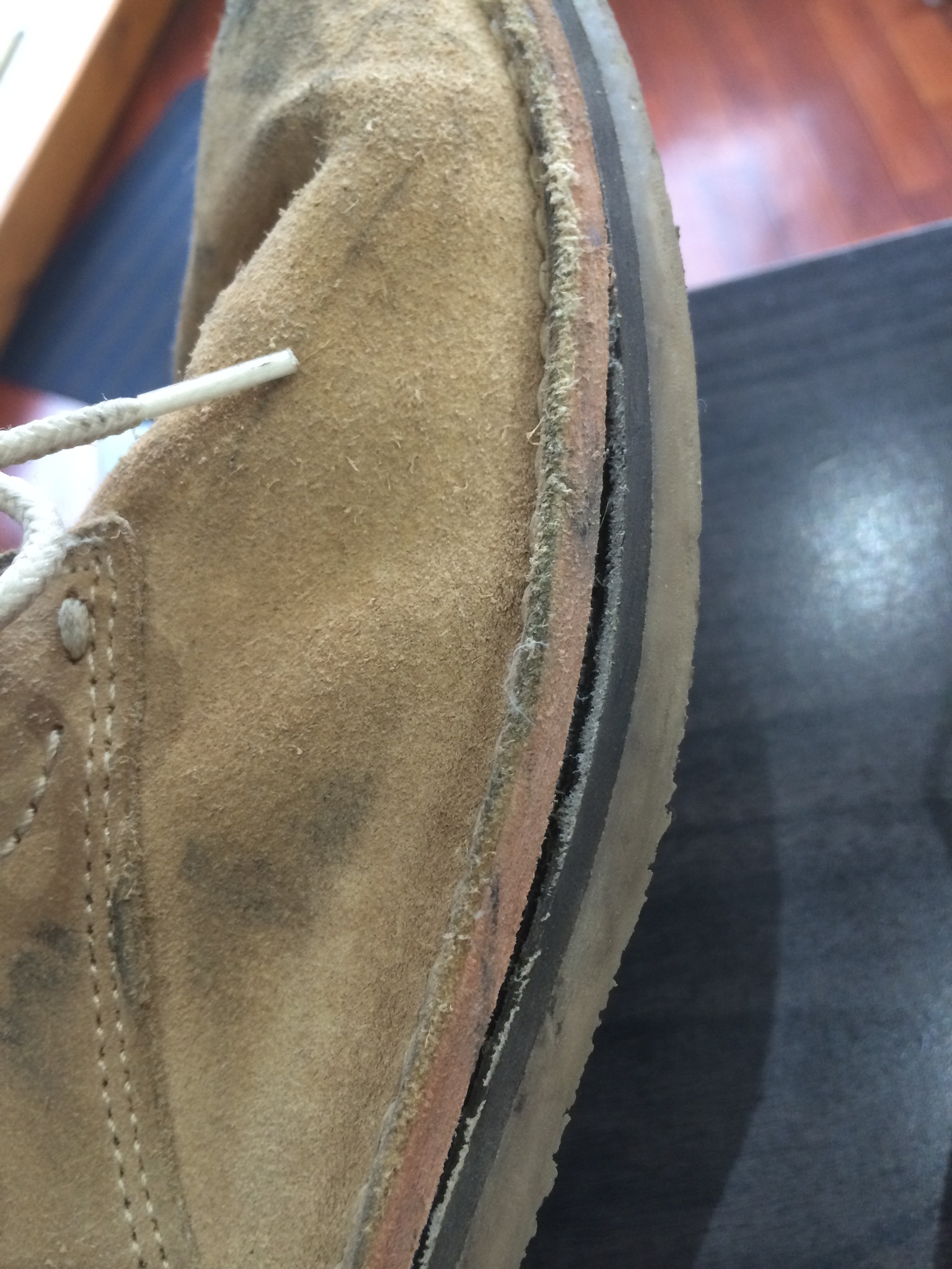 機械は使えないので手で靴底を除去します、、ネタネタなものがボロボロ落ちて床にこびりついたり