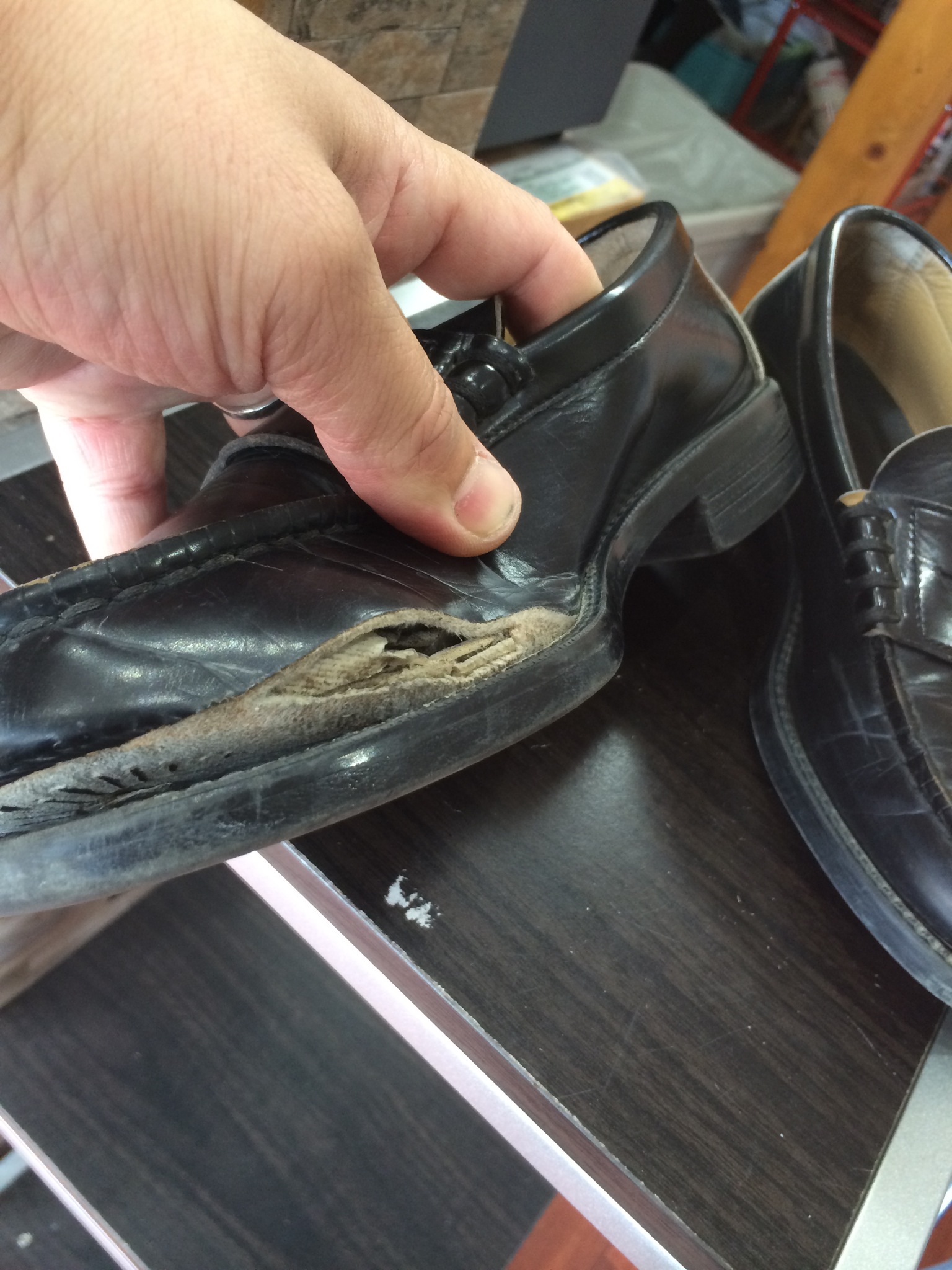 リーガルショップでも修理を断られた靴でした。