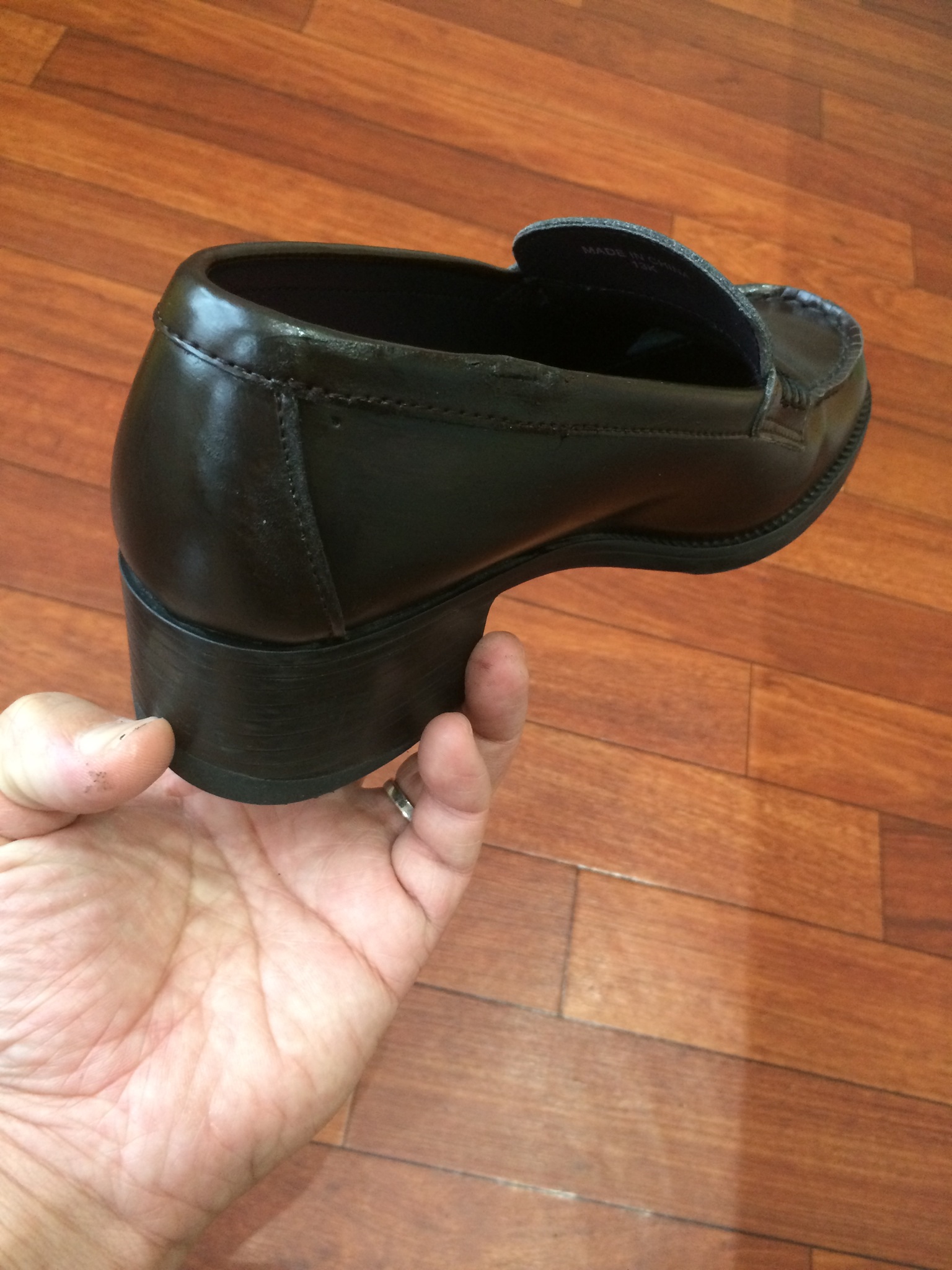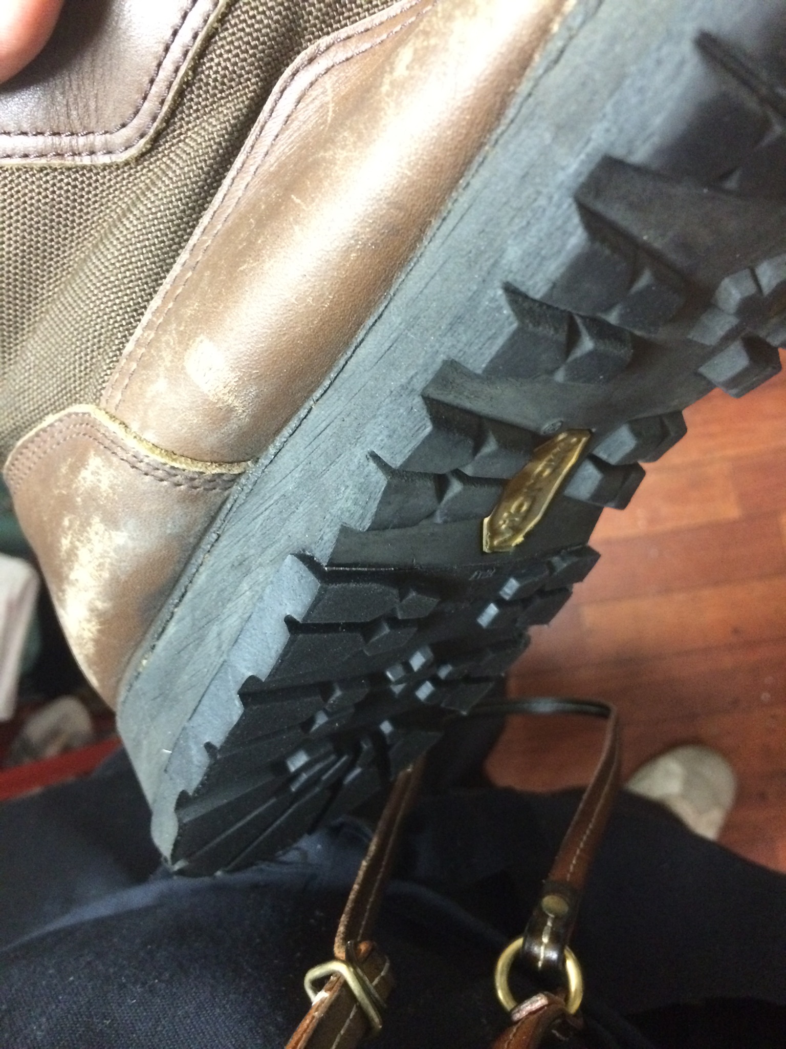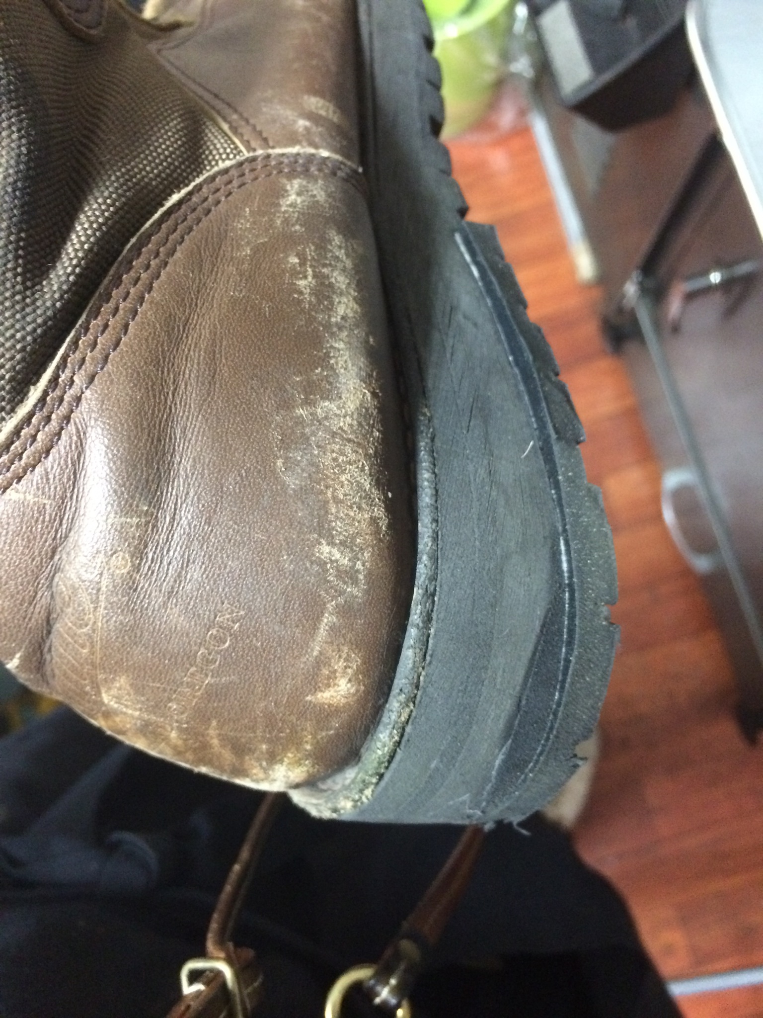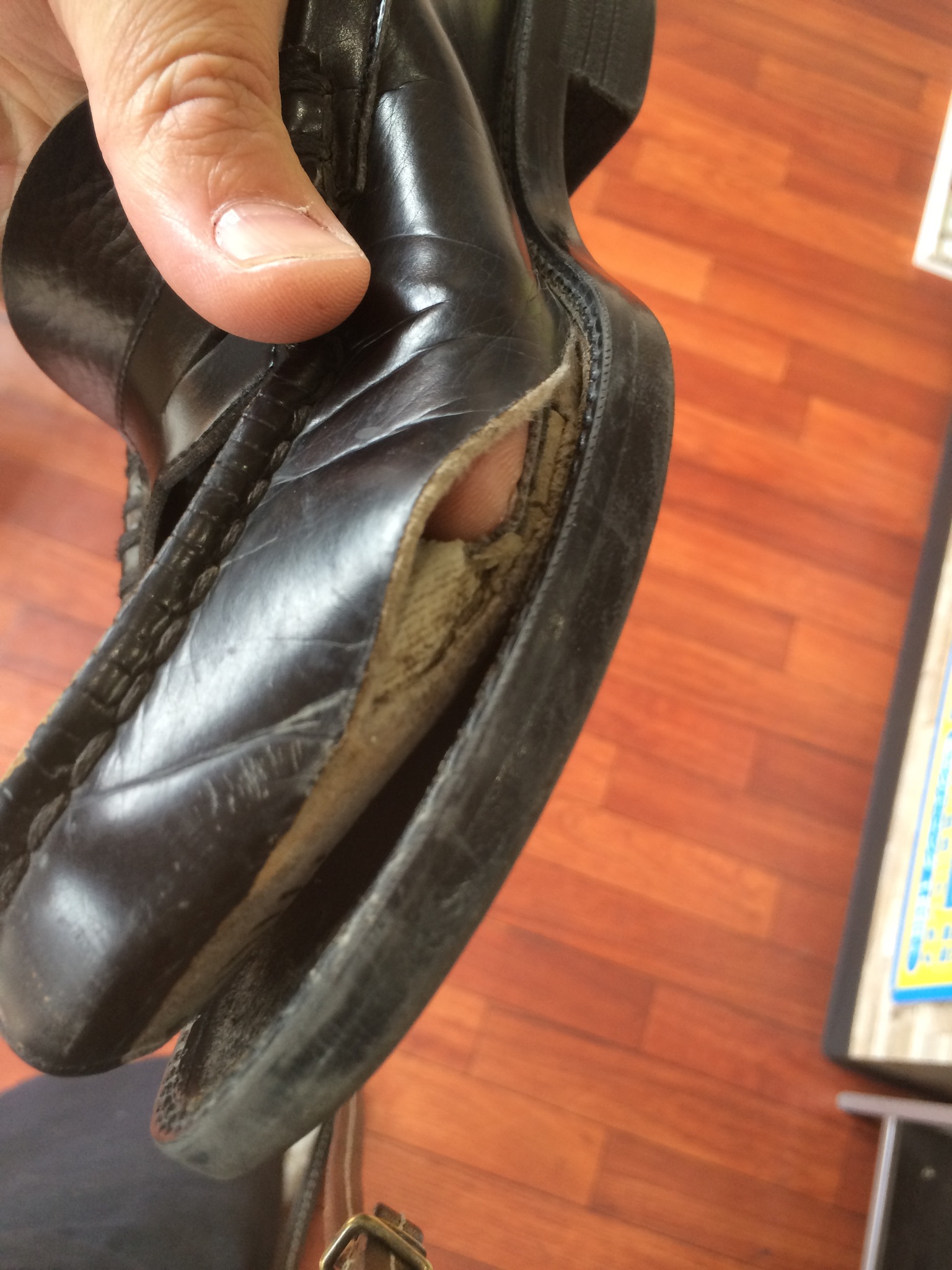 底をばらし、革を継ぎ足し、元に戻したのがこの靴なのです!