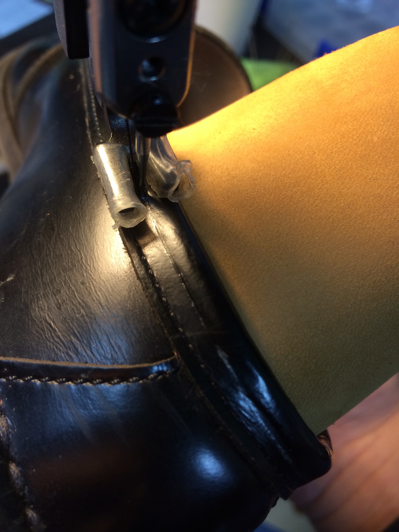 ↑靴の形状に合わせてすべり革を縫い付けます(^^)/